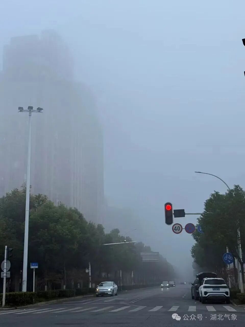 2日7時(shí)許,武漢大霧彌漫,能見度不佳。圖源:湖北氣象