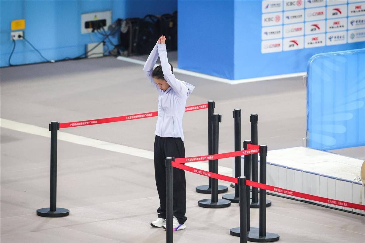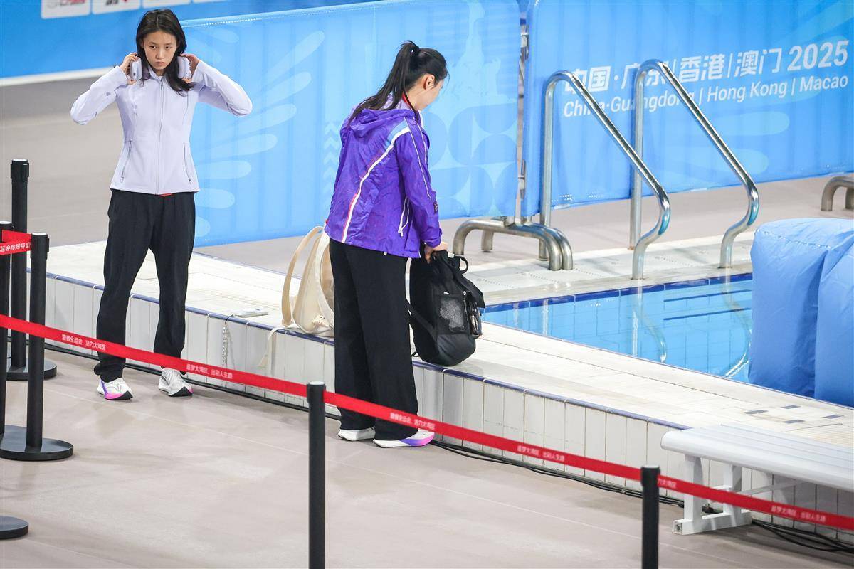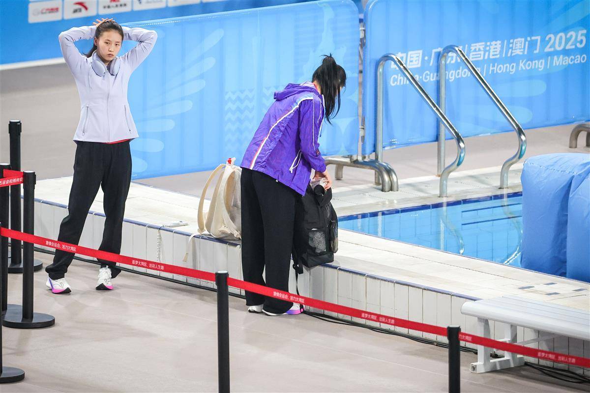 11月2日,廣東奧體中心游泳館,奧運冠軍、上海名將陳芋汐亮相備戰晚間進行的第十五屆全運會跳水女團雙人十米臺比賽。(湖北日報全媒記者 時龔 攝)