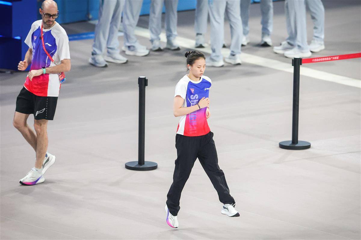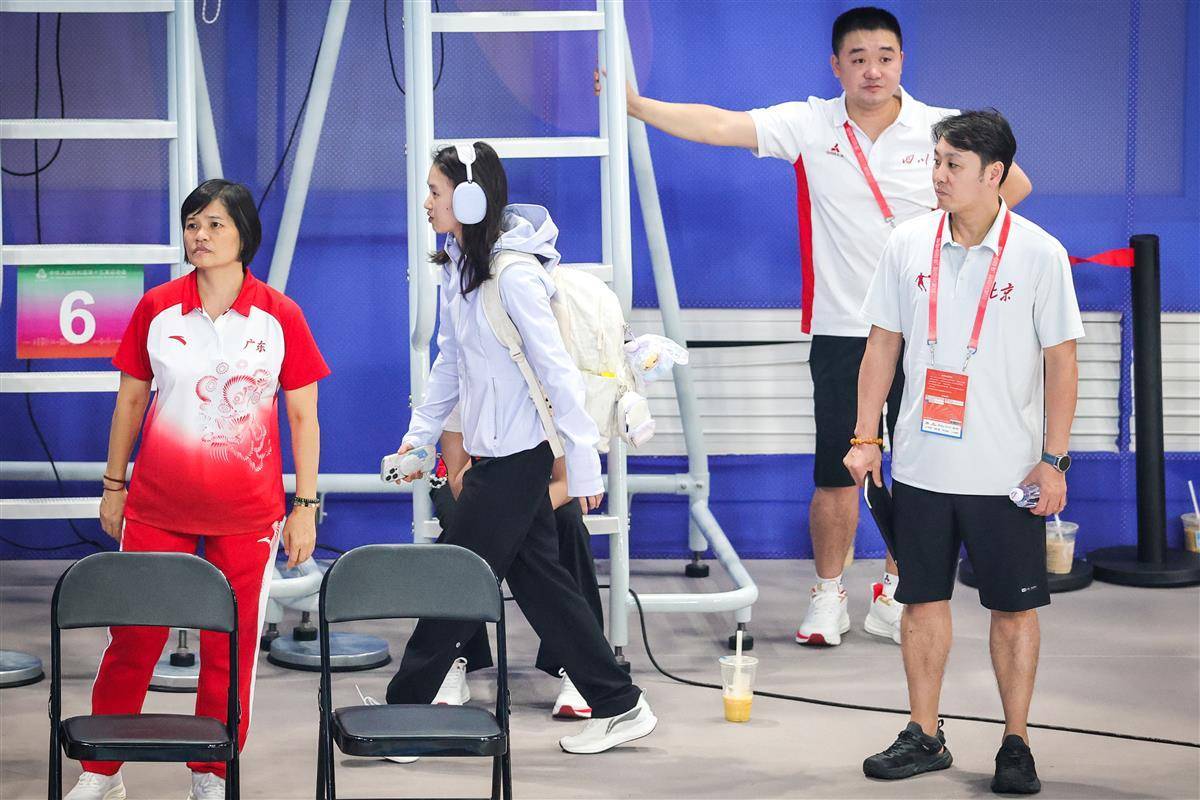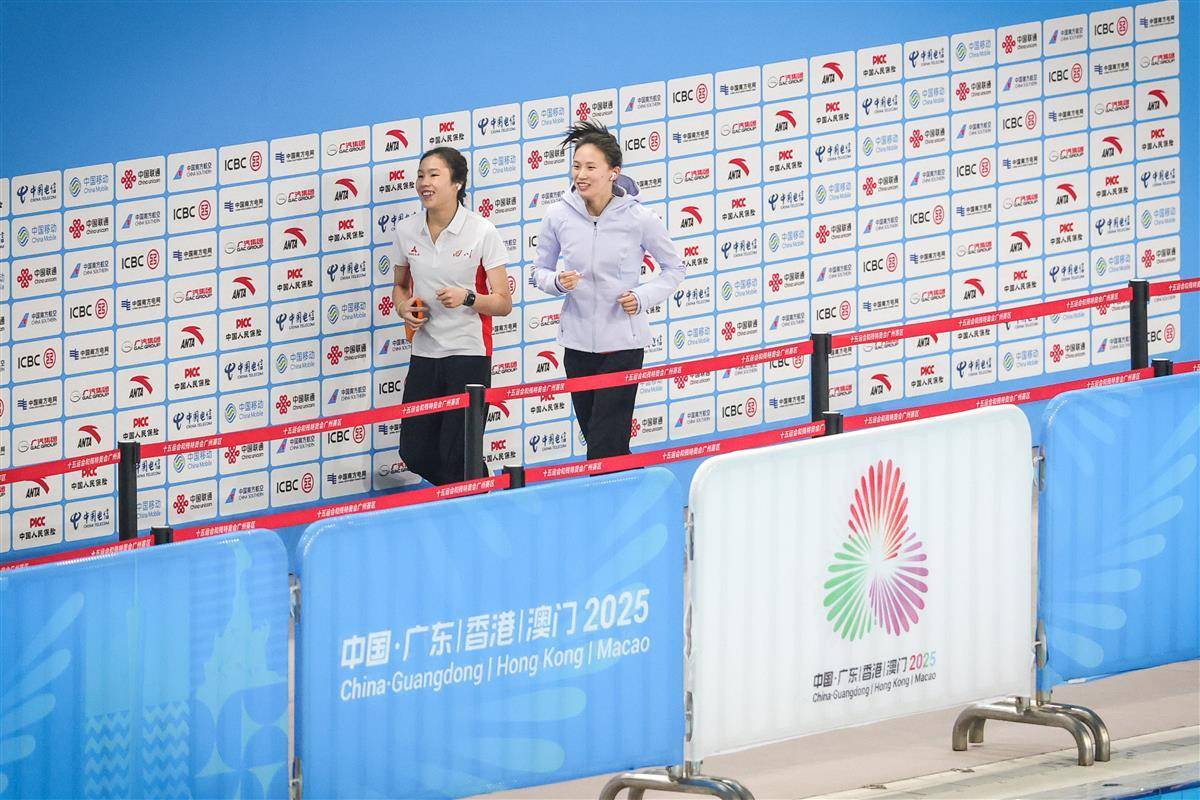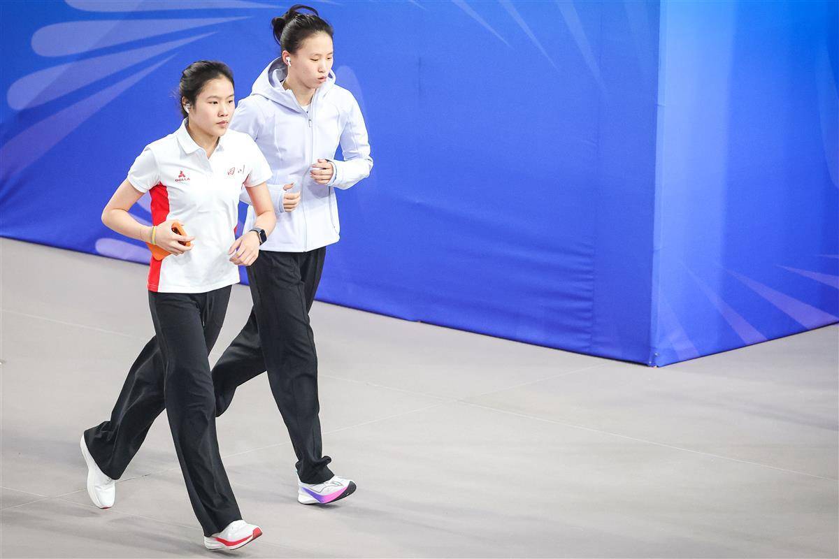 11月2日,廣東奧體中心游泳館,奧運冠軍、上海名將陳芋汐亮相備戰晚間進行的第十五屆全運會跳水女團雙人十米臺比賽。(湖北日報全媒記者 時龔 攝)
