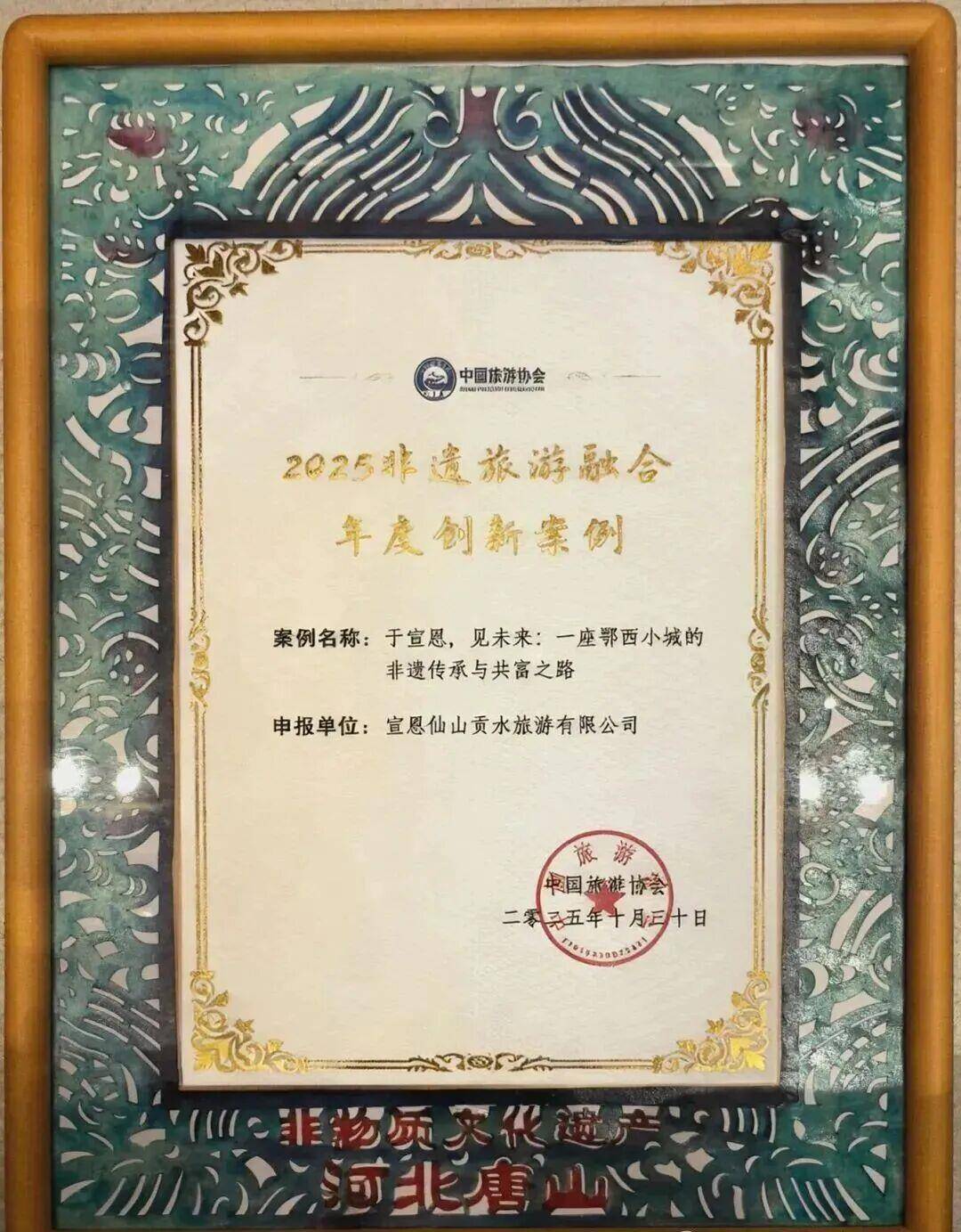 湖北日報訊 (記者王晶、通訊員鄂文旅)11月2日,從湖北省文化和旅游廳獲悉,日前由中國旅游協會、河北省文化和旅游廳、唐山市人民政府聯合主辦的“非遺旅游融合創新交流活動”在河北唐山舉行,會上正式發布全國20個“2025非遺旅游融合年度創新案例”。我省宣恩縣申報的《于宣恩,見未來:一座鄂西小城的非遺傳承與共富之路》成功入選,為全國縣域非遺活化與文旅融合發展提供了可推廣、可復制的“宣恩經驗”。