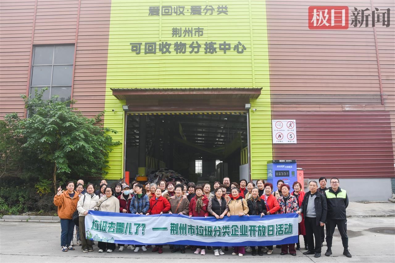10月31日,荊州市沙市區(qū)解放街道十方庵社區(qū)南湖小區(qū)的居民代表在愛(ài)回收·愛(ài)分類荊州市可回收物分揀中心參觀(極目新聞?dòng)浾?黃志剛 攝)