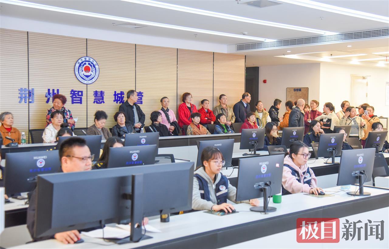 10月31日,荊州市沙市區(qū)解放街道十方庵社區(qū)南湖小區(qū)的居民代表在荊州市智慧城管信息中心參觀(極目新聞?dòng)浾?黃志剛 攝)