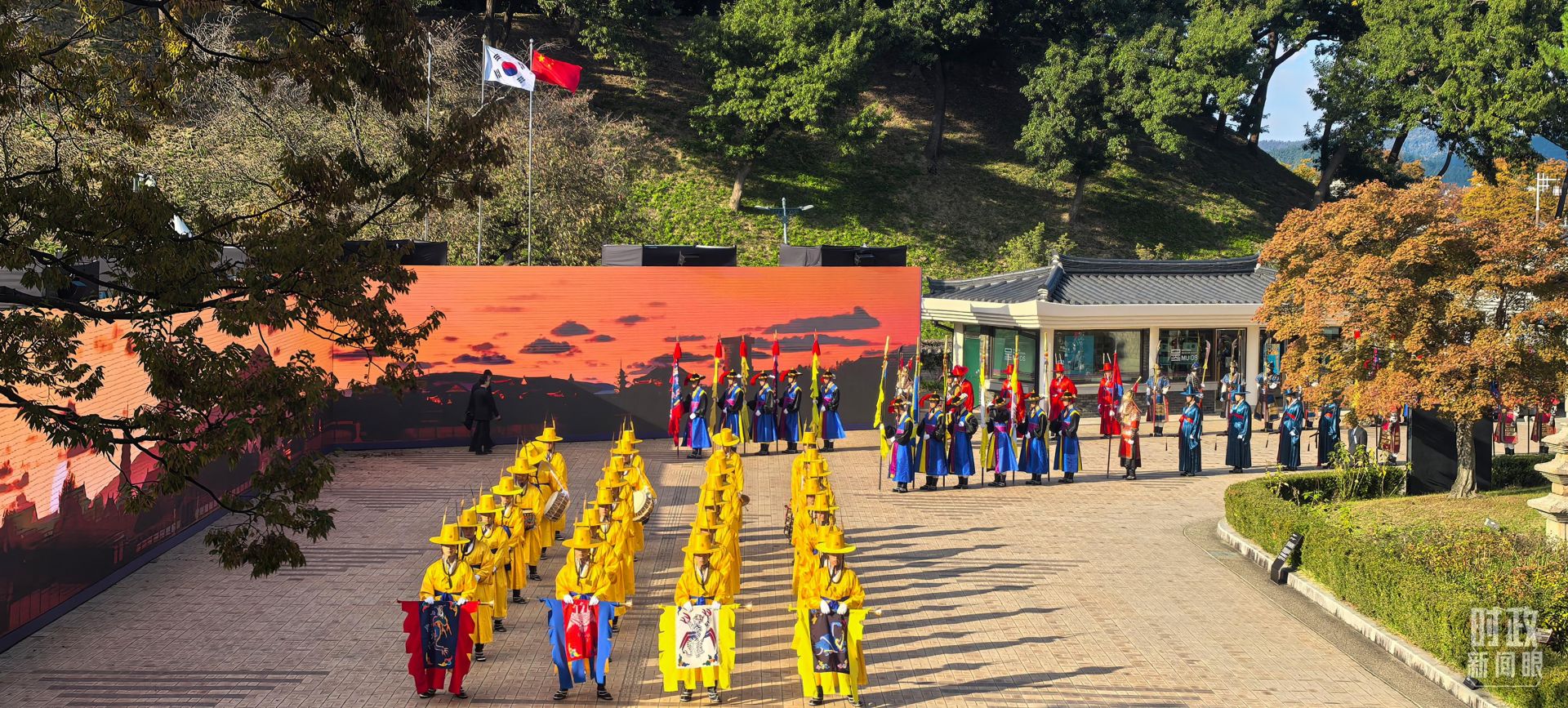 在慶州博物館的千年微笑館,李在明總統為習主席舉行高規格歡迎儀式,身著傳統民族服飾的韓國禮儀隊,隆重歡迎習主席到來。