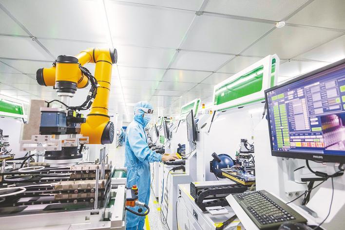 銳科激光黃石智造基地,員工在自動(dòng)化生產(chǎn)線上趕制激光器訂單。(湖北日報(bào)全媒記者 薛婷 攝)