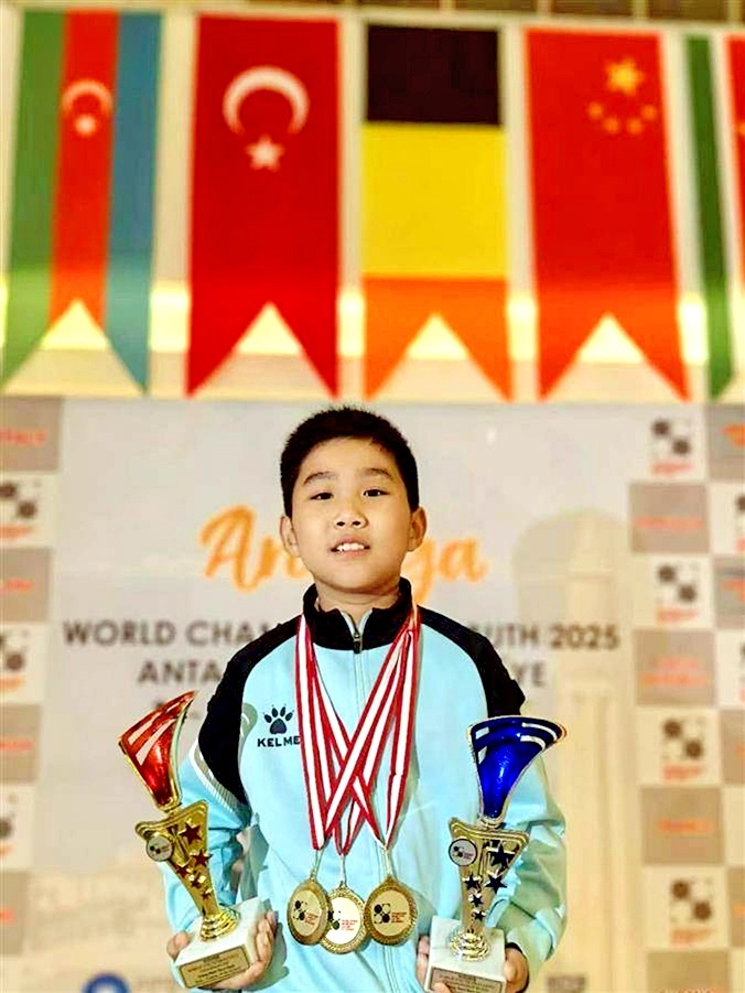 楚天都市報極目新聞訊(記者馬明玉)11月1日,2025年世界青少年國際跳棋錦標賽在土耳其安塔利亞收官。繼常規賽奪得男子U8組冠軍之后,武漢啟明星國際跳棋俱樂部的8歲小將辛梓玄又包攬該組別快棋賽和超快棋賽冠軍,成為“三冠王”。