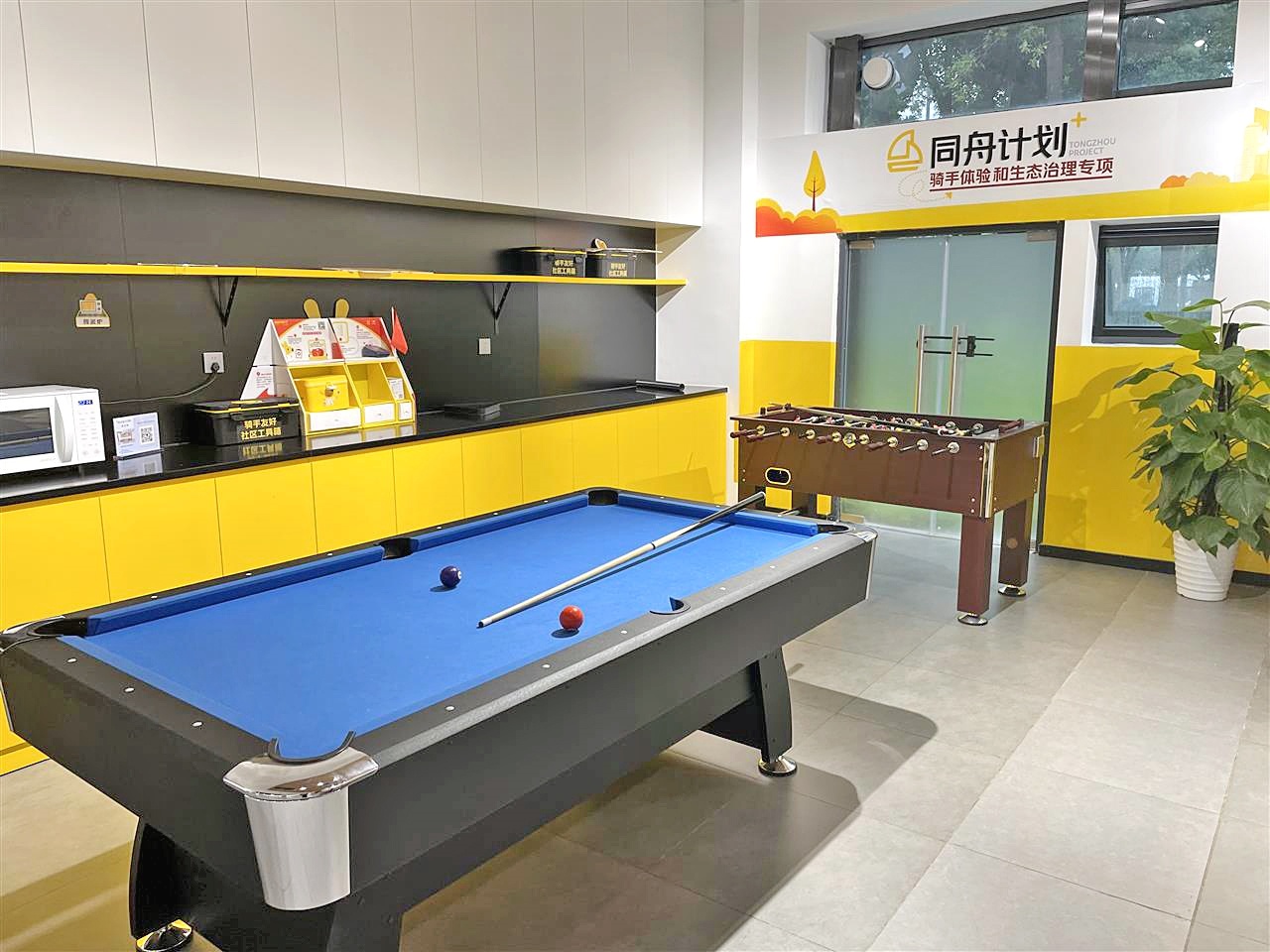 記者看到,這里不僅有休息場所,還有圖書、臺球、象棋等供騎手免費使用。