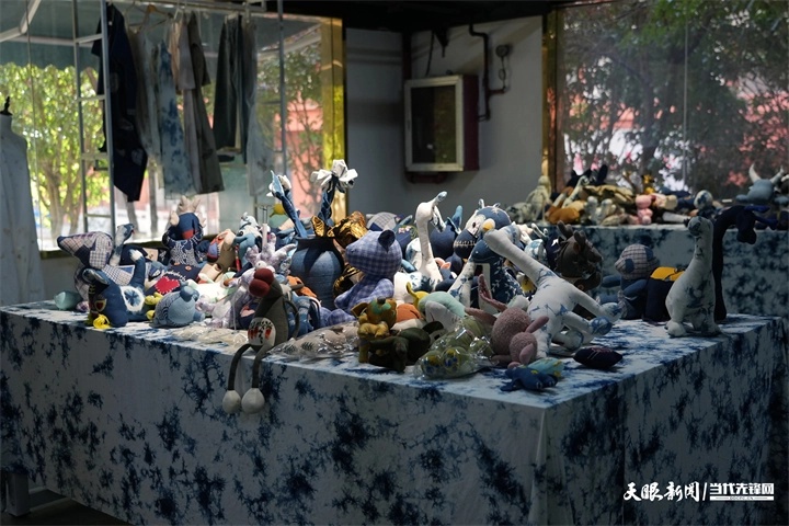 走進吾土吾生的展廳,靛藍染就的衣服、拼布點綴的布包、刺繡裝飾的抱枕琳瑯滿目。這些融入布依文化元素的文創產品,背后藏著200余名本地婦女的生計與驕傲,公司創始人韋祥龍始終堅守“人與自然和諧共處”的古法理念,同時創新植物染配色工藝,染出了年輕人追捧的莫蘭迪色系。