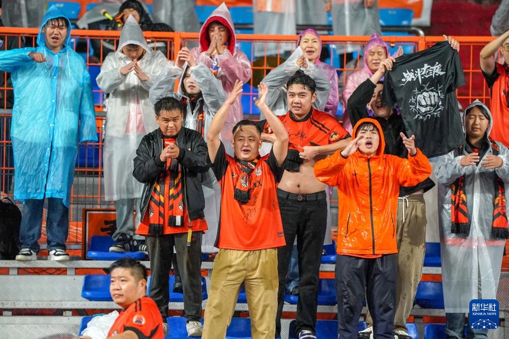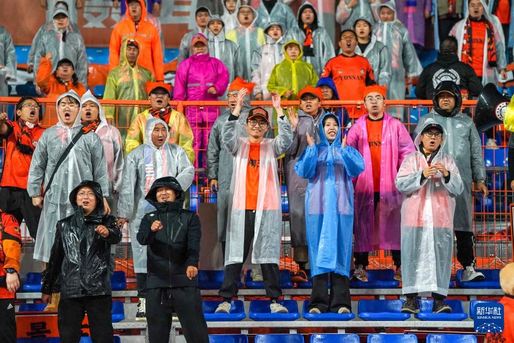 11月2日,云南玉昆隊(duì)球迷在雨中為球隊(duì)加油。