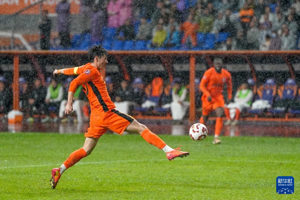 11月2日,云南玉昆隊(duì)球員迪力穆拉提·毛拉尼牙孜在比賽中射門(mén)。