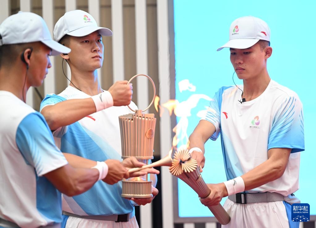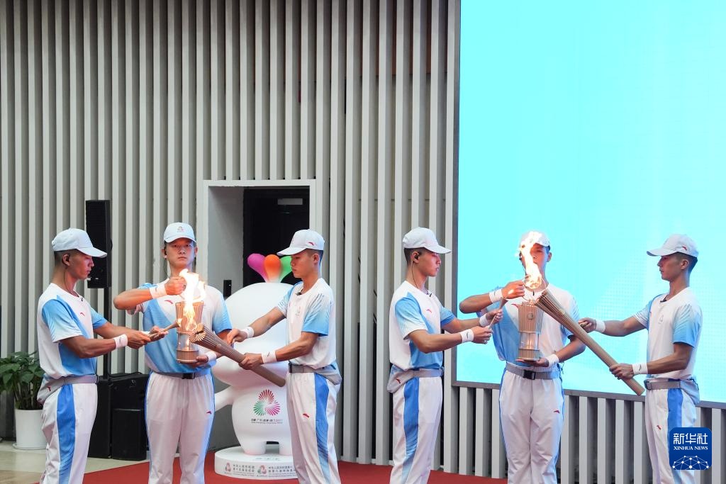當日,第十五屆全運會火炬?zhèn)鬟f融火儀式在廣州舉行。