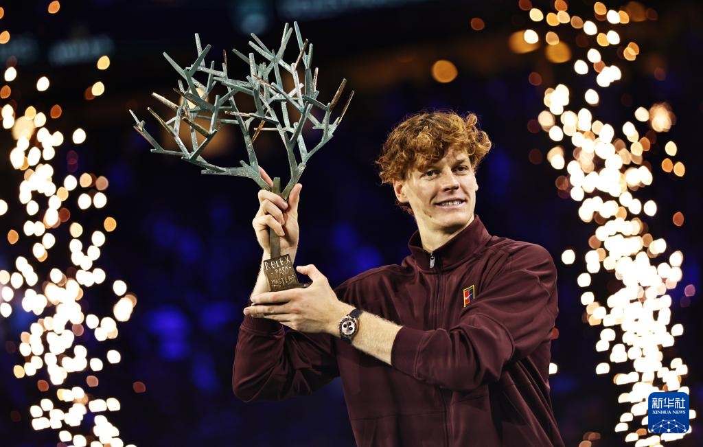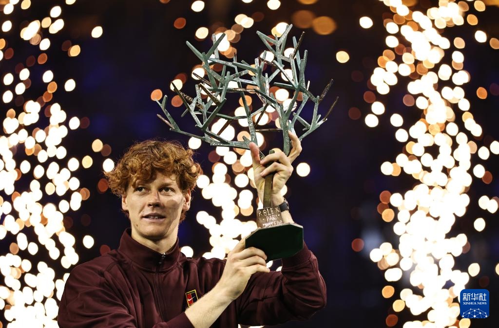 11月2日,辛納展示冠軍獎杯。