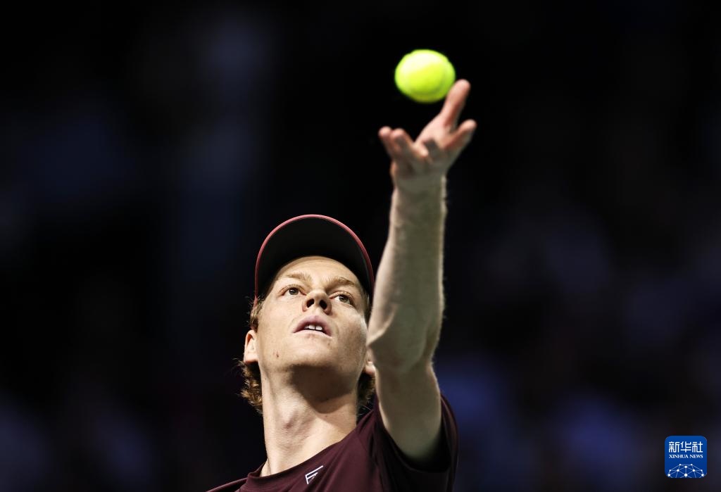 11月2日,辛納在比賽中發(fā)球。