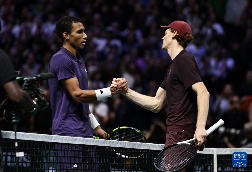 11月2日,辛納(右)與奧熱-阿利亞西姆在比賽結(jié)束后握手致意。