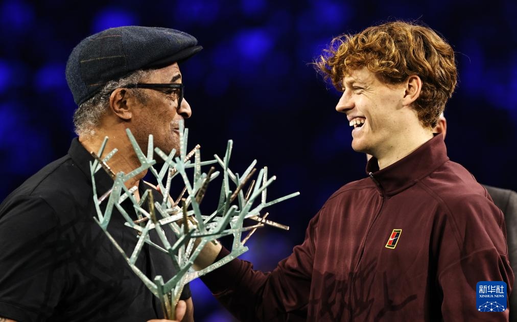 11月2日,法國網(wǎng)球名宿揚尼克·諾亞(左)為辛納頒獎。