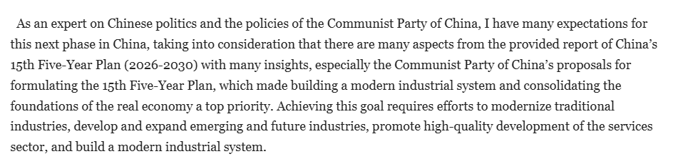 納迪亞·希勒米在文章中稱,作為一名中國(guó)問題專家,基于對(duì)中國(guó)“十五五”規(guī)劃的深入研讀,“我對(duì)中國(guó)未來發(fā)展充滿期待”。文章指出,值得注意的是,在規(guī)劃建議中將建設(shè)現(xiàn)代化產(chǎn)業(yè)體系、夯實(shí)實(shí)體經(jīng)濟(jì)根基列為優(yōu)先任務(wù)。實(shí)現(xiàn)這一戰(zhàn)略目標(biāo),需要著力推進(jìn)傳統(tǒng)產(chǎn)業(yè)現(xiàn)代化轉(zhuǎn)型,培育壯大新興與未來產(chǎn)業(yè),推動(dòng)服務(wù)業(yè)高質(zhì)量發(fā)展,最終構(gòu)建起先進(jìn)的現(xiàn)代化產(chǎn)業(yè)體系。