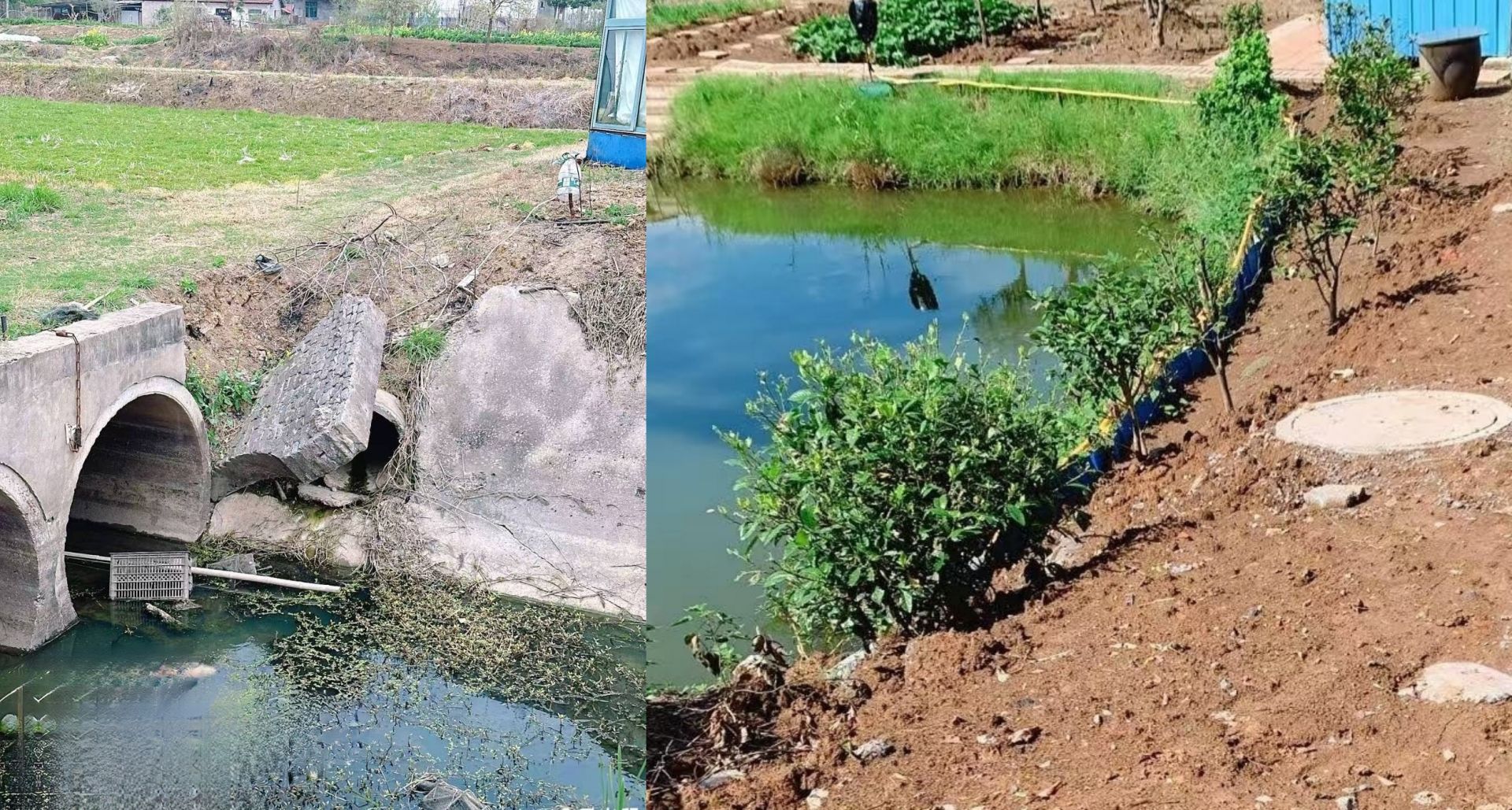 整改前生活污水直排進附近河渠,整改后擴充改造地下污水管道,附近水質已有所改善