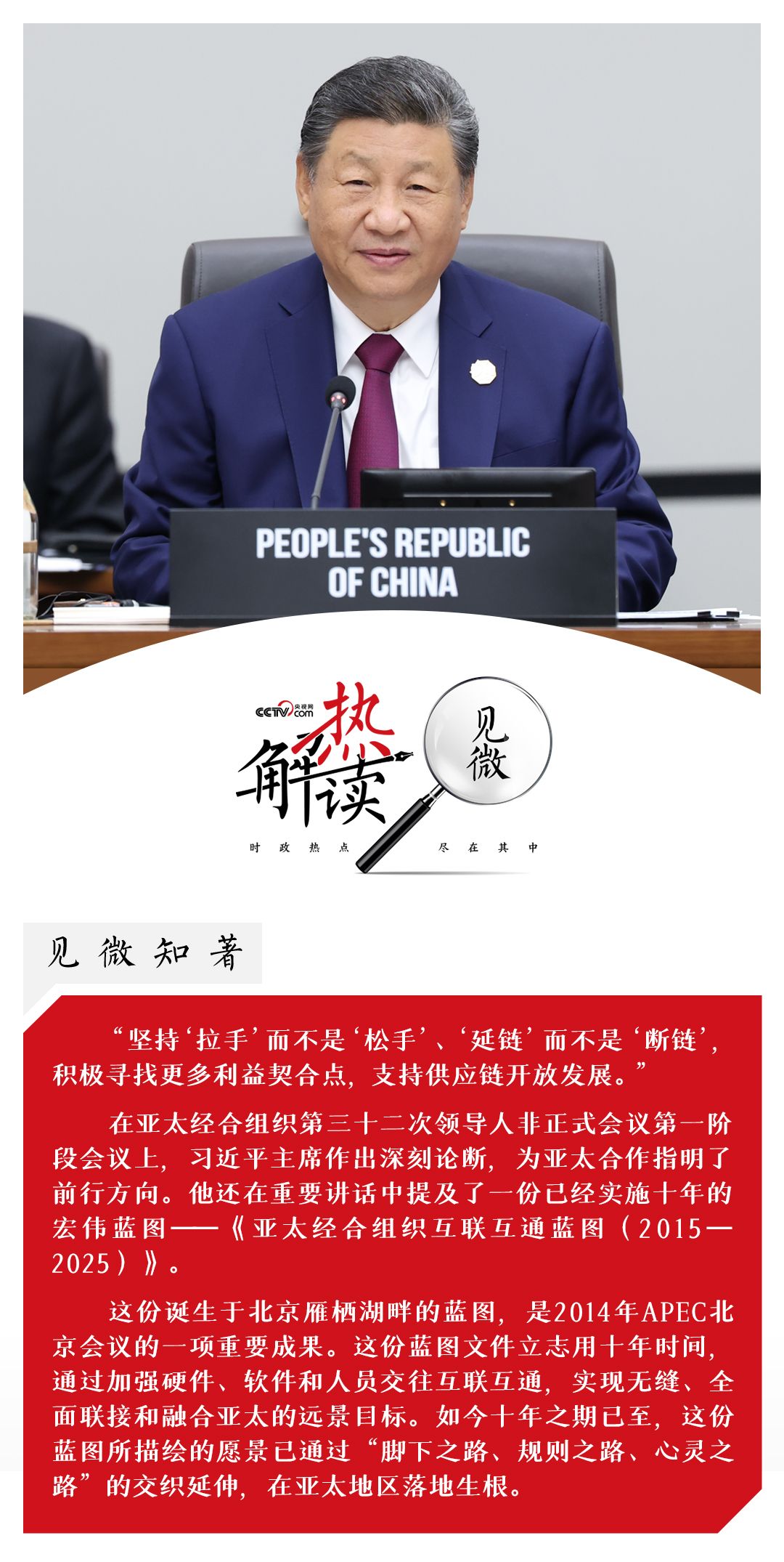 在亞太經(jīng)合組織這個大家庭里,中國始終以務實行動推動構建互聯(lián)互通、共同發(fā)展的開放格局,讓“開放包容”成為亞太合作的主旋律。