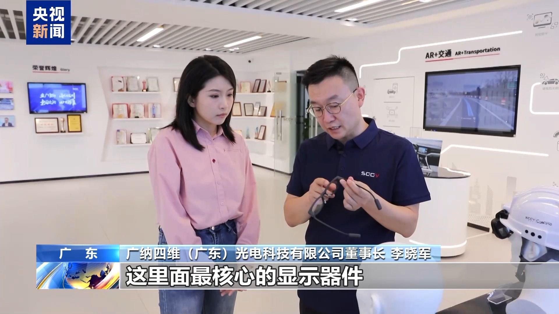 廣納四維(廣東)光電科技有限公司董事長 李曉軍:這里面最核心的顯示器件,就是用光波導芯片來實現。