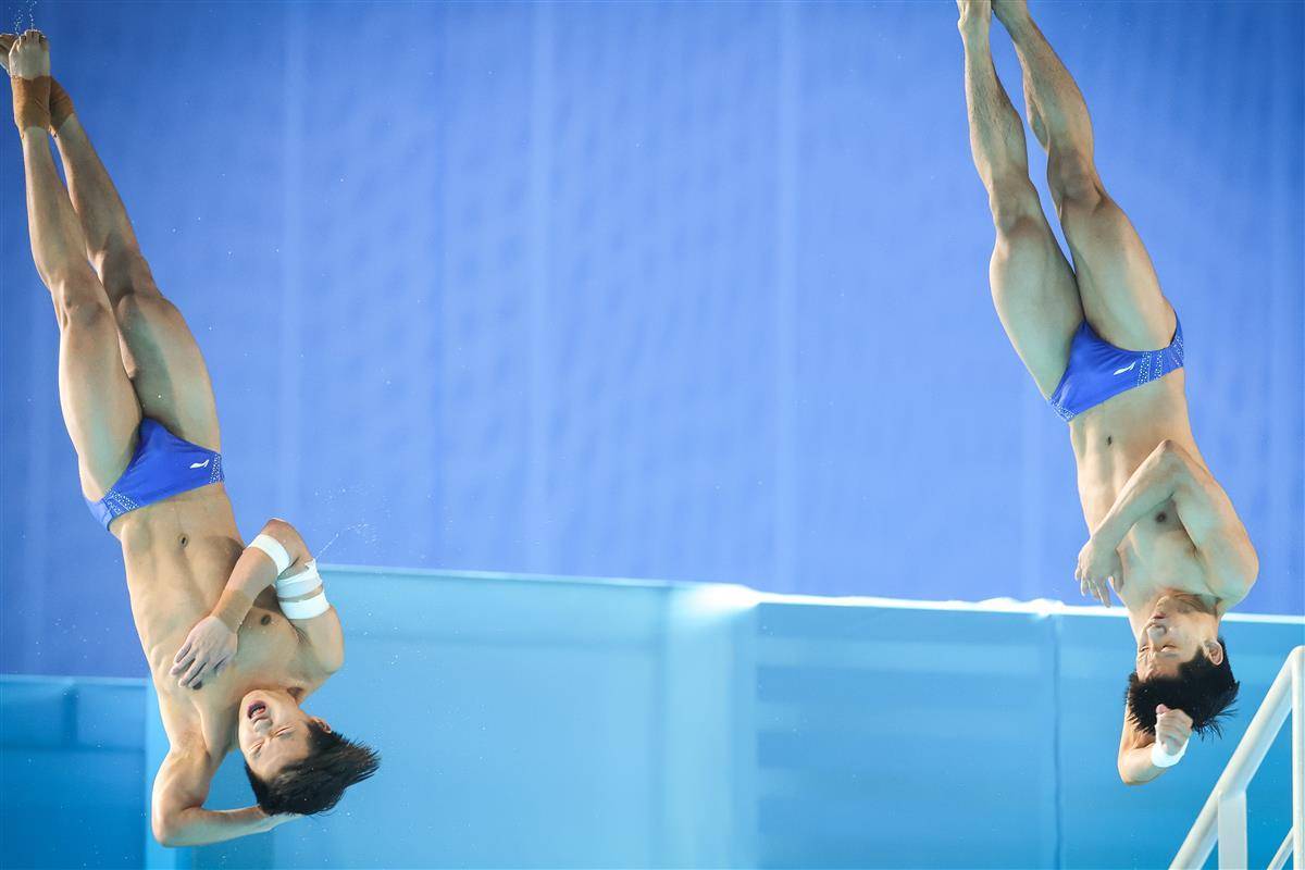 作為領軍人的王宗源聯袂鄭九源,不僅為鄂軍取得開門紅,又帶著隊伍沖出困境。在單人3米板較量中,王宗源保持高水準穩定輸出,兩次單跳超過90分,最后一跳更是成為全場唯一破百的選手,拿到100.70分。他以544.30分高居榜首,比排名第二的廣東選手嚴思宇高出41.95分。與此同時,鄭九源也一跳比一跳發揮得好,最后兩跳分別得到96.90分、99.45分的高分,為湖北隊的總分增加了489.25分。在進入最后一項雙人10米臺之前,湖北隊已趕超到第二位,與廣東隊相差40.56分,領先排名第三的山東隊91.46分。