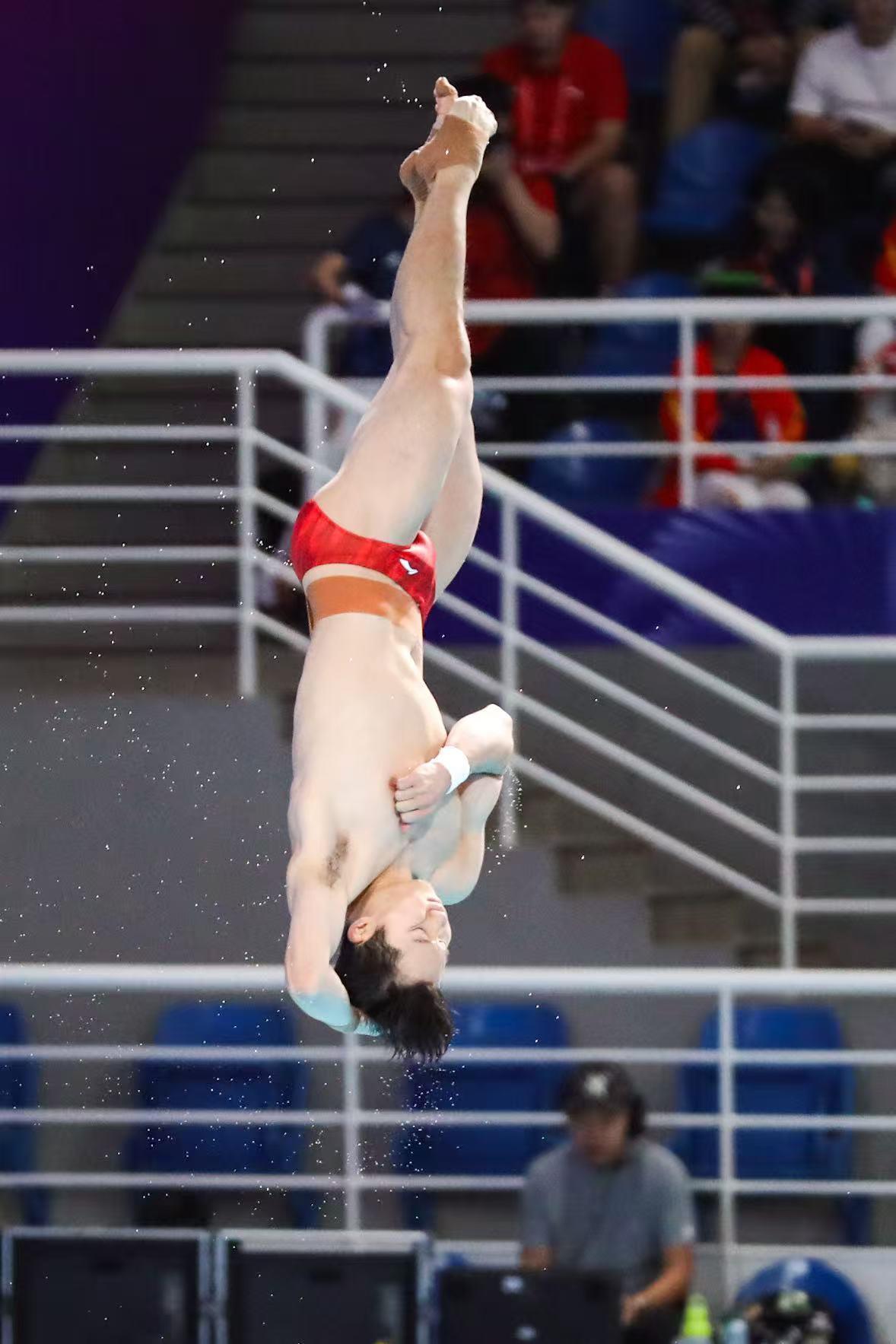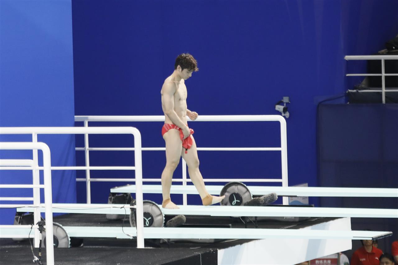 首場進行的男子雙人3米板比賽,湖北隊派出王宗源和鄭九源、嚴鑫和張磊參賽,前者在第8位登場,后者在第20位登場。王宗源和鄭九源在首跳就上演了精彩表現(xiàn),得分86.70分,全場最高。隨后兩跳,兩人分別跳出了88.92分和91.26分,最終以總得分266.88分獲得第一。湖北隊另一對組合嚴鑫和張磊總得分為212.10分,排名第7。