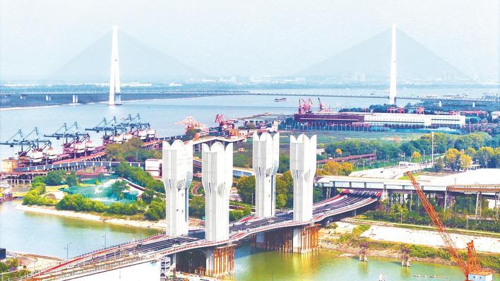 10月31日,湖北、中部地區(qū)首座開啟橋右岸大道開啟橋建成,右岸大道北段工程進入試通車階段。
