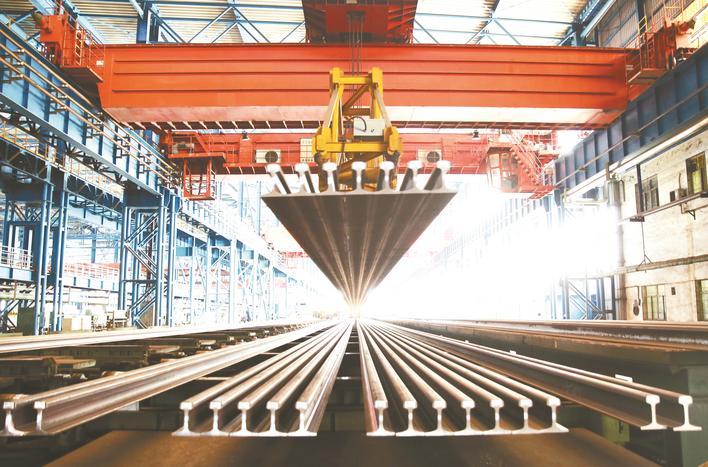 整裝待發(fā)的武鋼有限高鐵重軌。