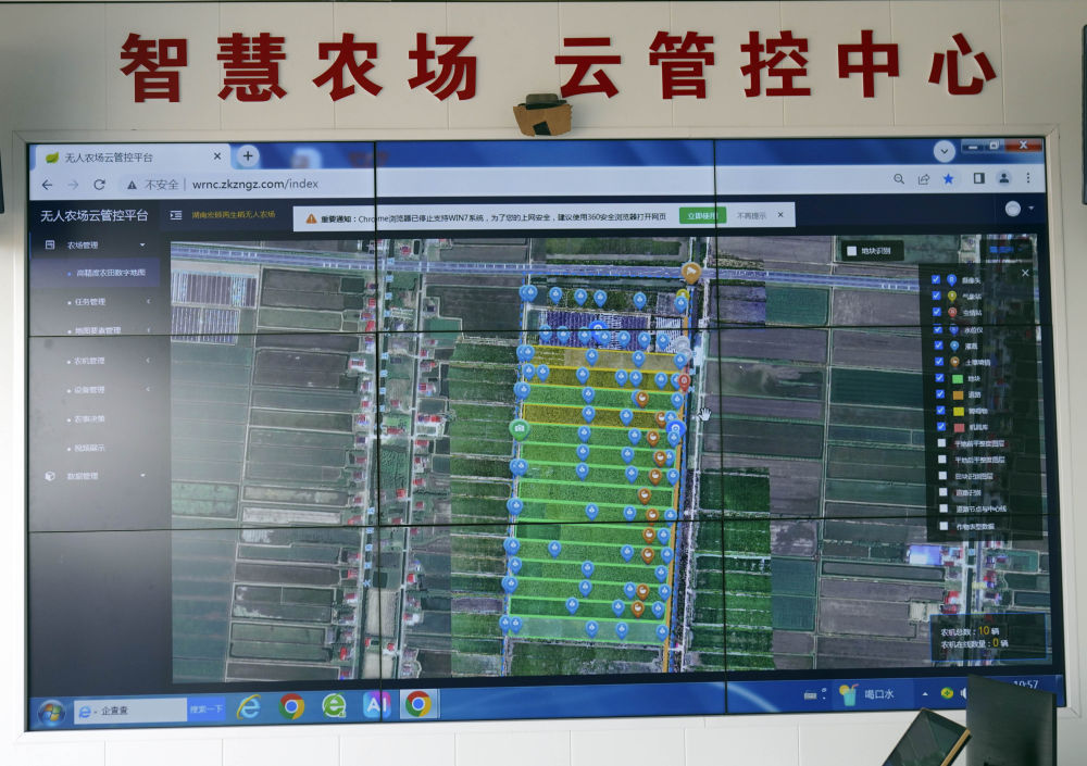 “現在種植和收割不僅用到了各種無人駕駛農機,物聯網設備也能承擔許多工作。”她指著農田旁的苗情監測攝像頭說,當發現水稻出現缺水等情況,農戶通過App簡單操作即可實現精準灌溉。