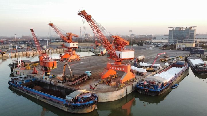 這是2025年1月7日拍攝的周口中心港范營作業區。新華社發 (劉俊濤攝)