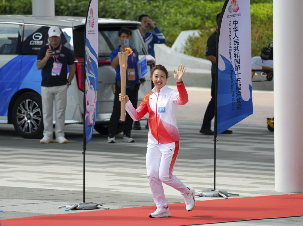 11月2日,火炬手佘繕妡在火炬傳遞中。當日,中華人民共和國第十五屆運動會火炬傳遞香港站舉行。新華社記者 朱煒 攝
