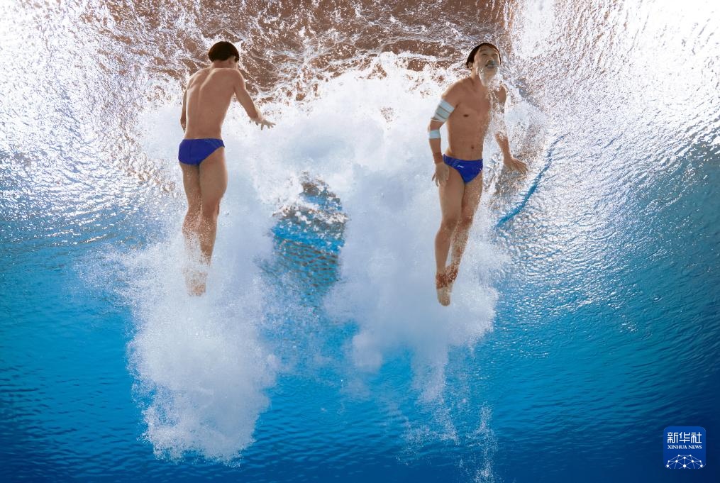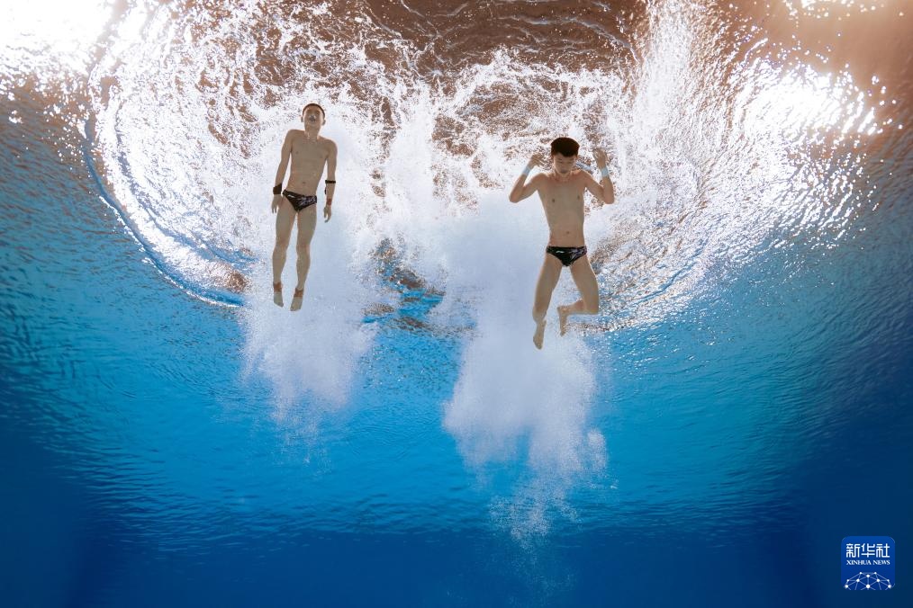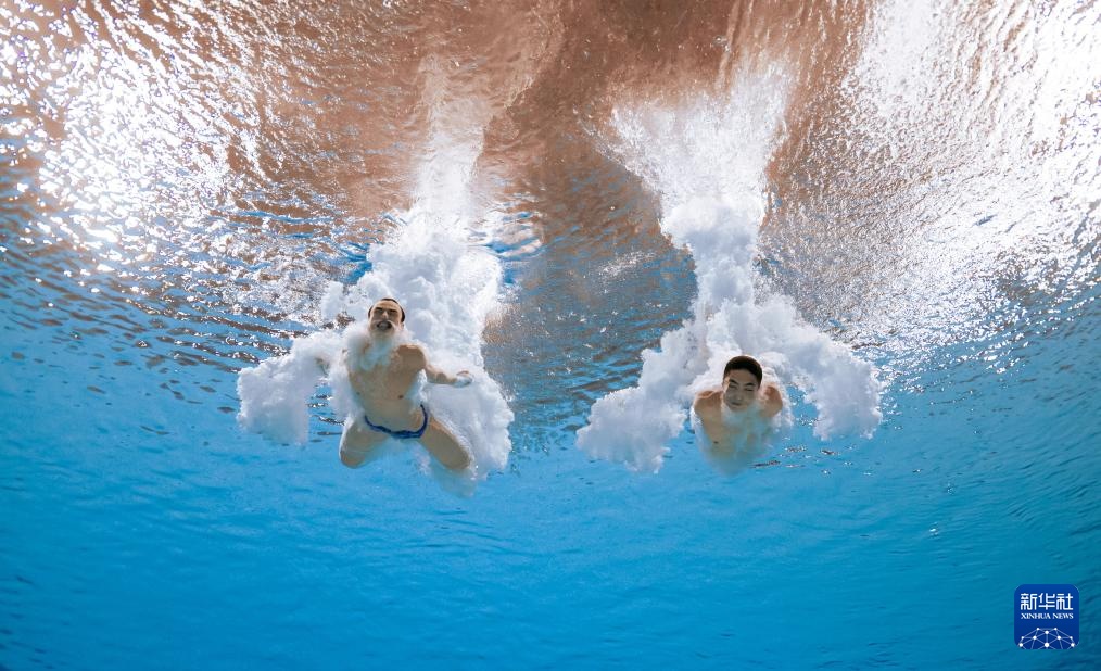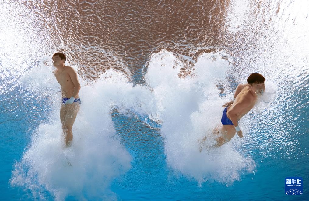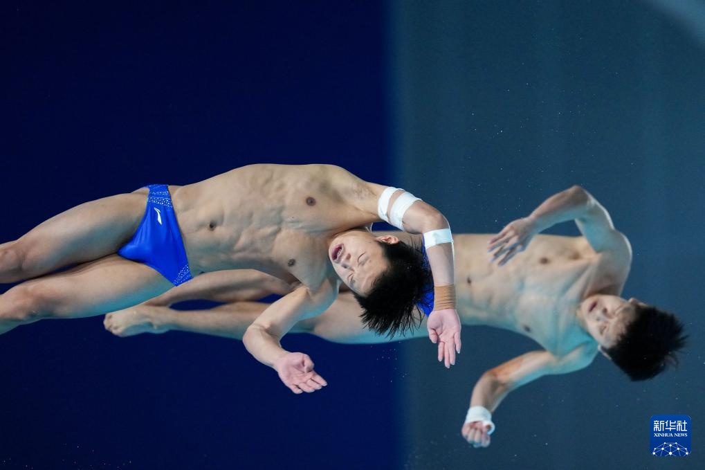 11月3日,湖北隊(duì)組合程子龍/華文豪在男子雙人10米跳臺(tái)比賽中。