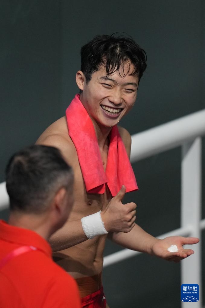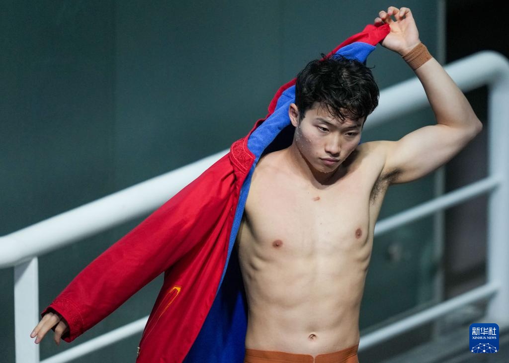 11月3日,湖北隊(duì)選手鄭九源在男子三米板比賽間隙。
