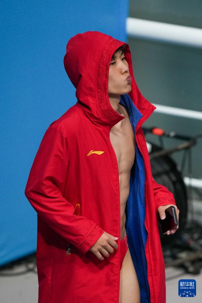 11月3日,湖北隊(duì)選手王宗源在男子三米板比賽間隙。