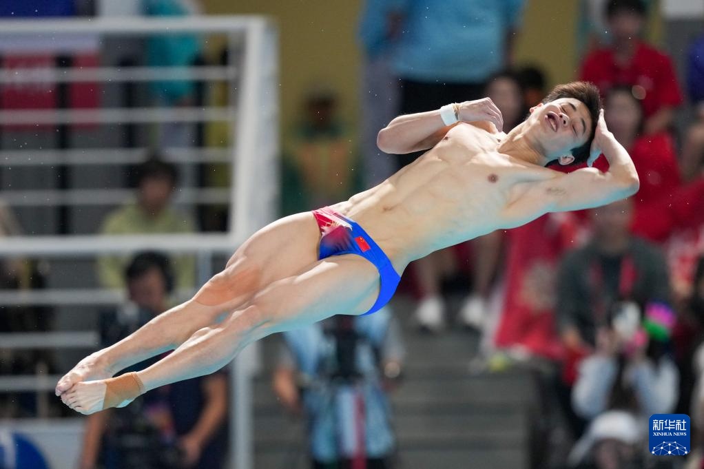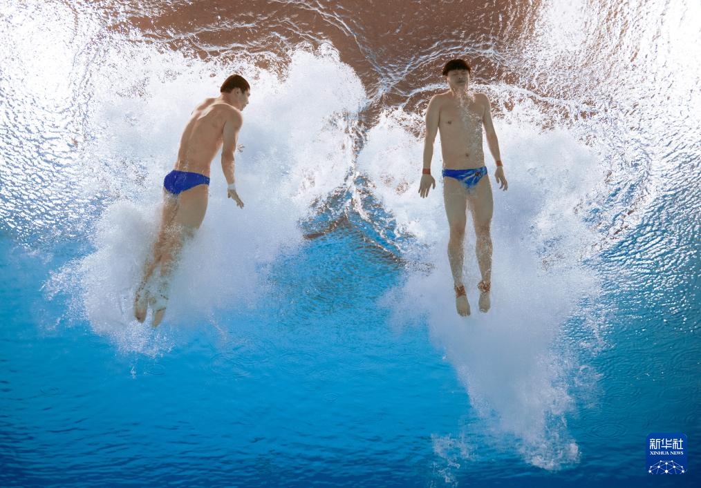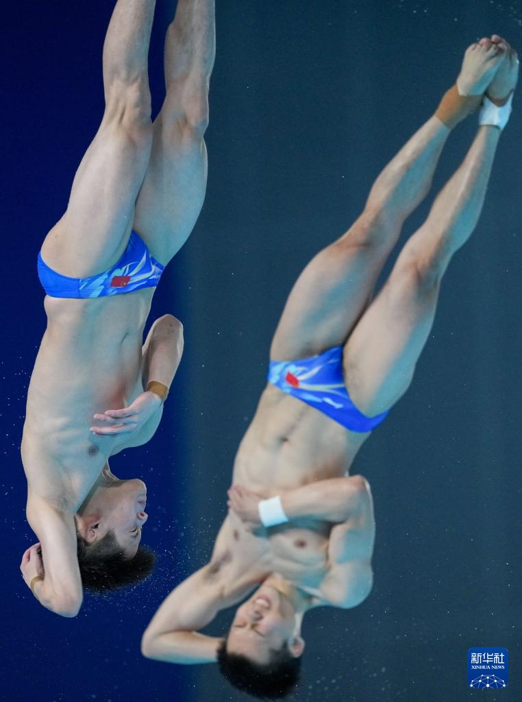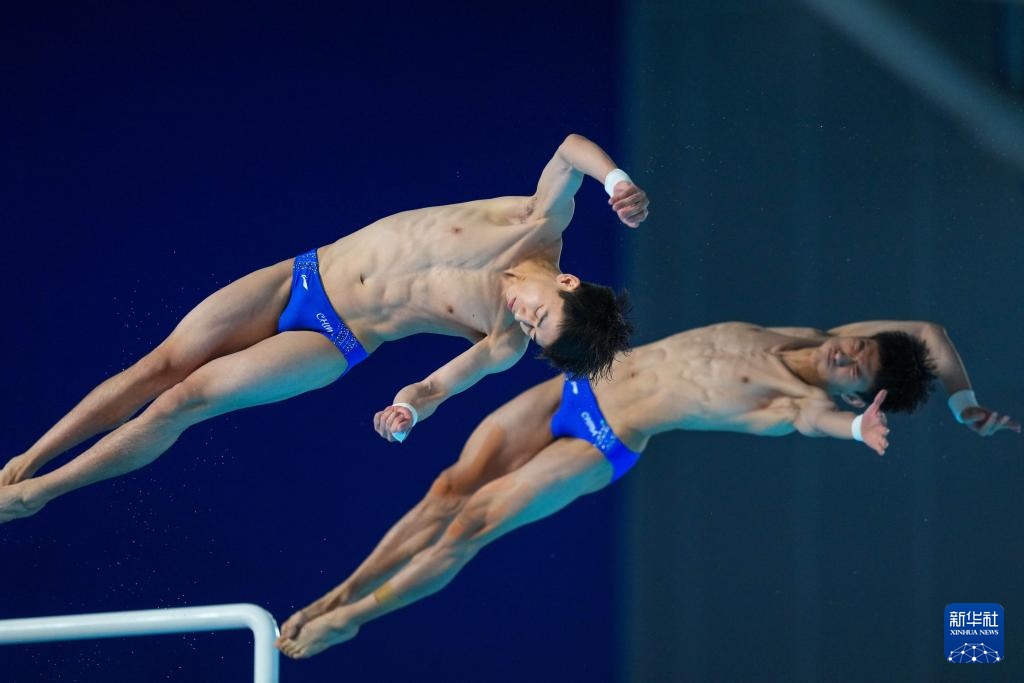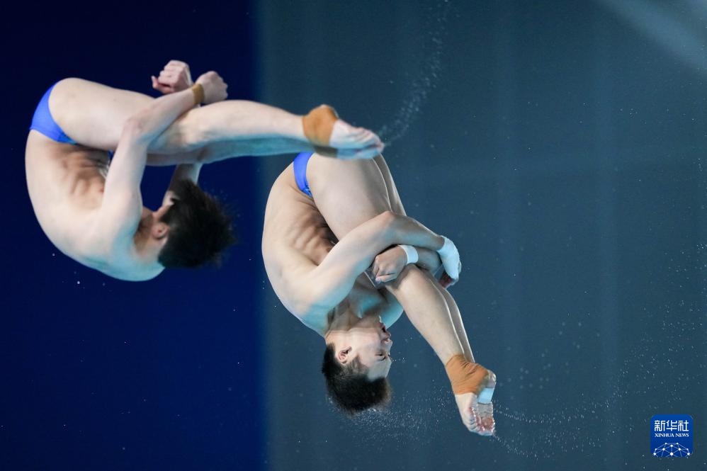11月3日,廣東隊組合陳艾森/朱子鋒在男子雙人10米跳臺比賽中。