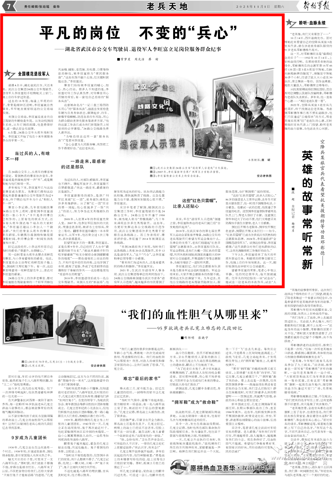 荊楚網(湖北日報網)訊(記者 周光潔 通訊員 常夢星、廖瑜)11月1日,《解放軍報》老兵天地版刊發《平凡的崗位 不變的“兵心”——湖北省武漢市公交車駕駛員、退役軍人李旺富立足崗位服務群眾紀事》報道。