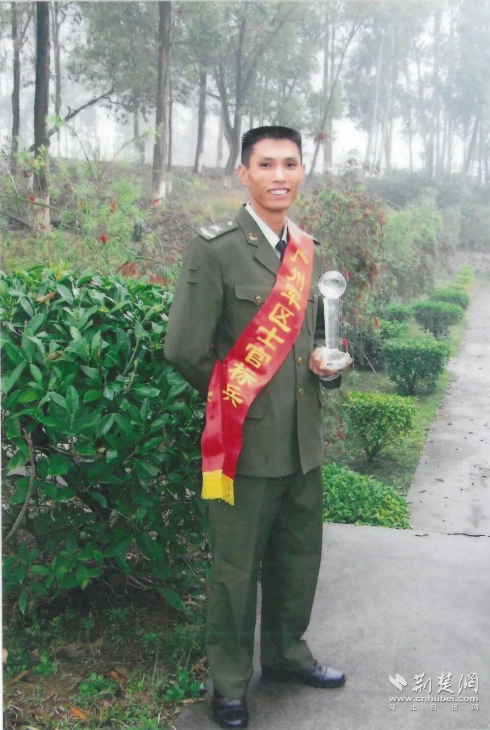 2007年,李旺富被評為原廣州軍區士官標兵留影。通訊員供圖