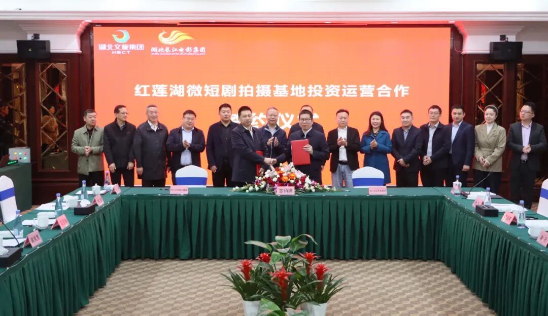 湖北日報客戶端訊(通訊員劉崢)11月3日,湖北文旅鄂州集團與湖北長江電影集團在紅蓮湖酒店舉行微短劇拍攝基地簽約儀式。湖北文旅集團黨委委員、副總經理羅欽,鄂州市華容區委常委、紅蓮湖旅游度假區黨工委書記、管委會主任李明杰,湖北長江電影集團黨委書記、董事長朱雨龍,黨委副書記、總經理謝云,湖北文旅鄂州集團黨委書記、董事長謝良寬出席儀式并見證簽約。