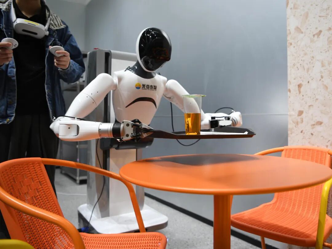 光谷東智機器人在奶茶店端茶倒水。記者高勇 攝