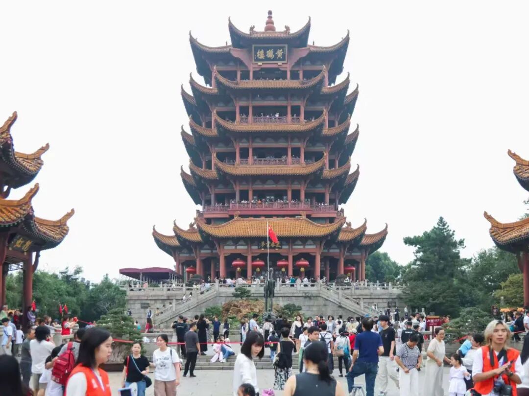 今年國慶中秋長假期間,黃鶴樓人流如織。