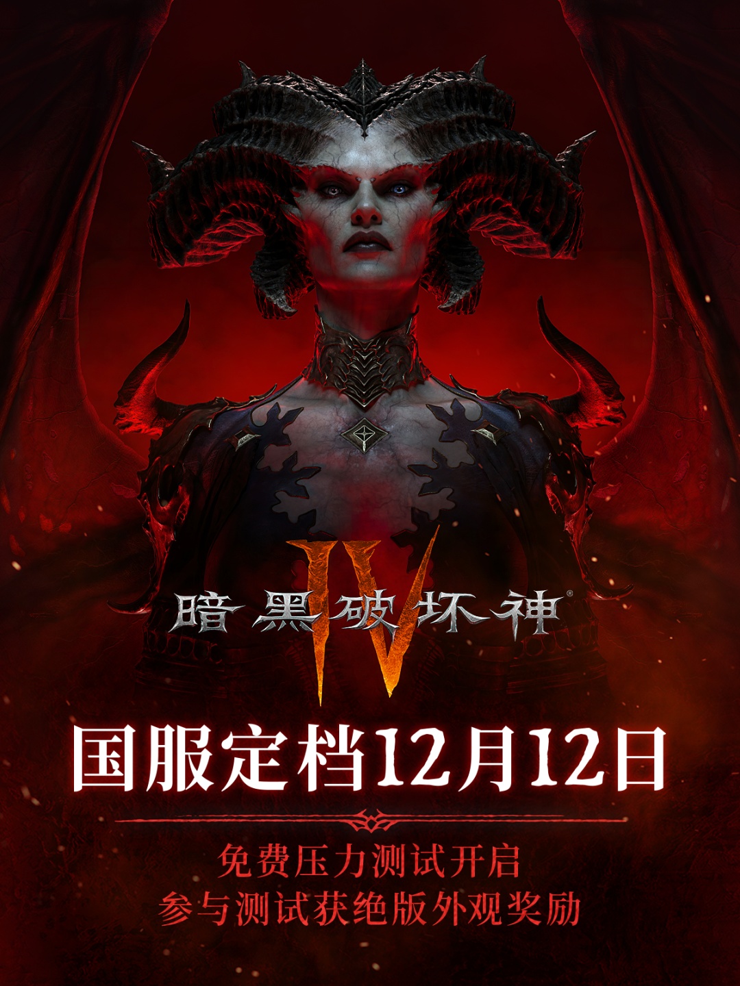 11月4日,《暗黑破壞神Ⅳ》國服官宣將于12月12日正式上線,后續版本將與全球同步更新,所有玩家現在起即可預約游戲,免費測試將于11月7日開啟。