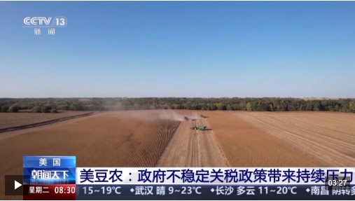 美國艾奧瓦州豆農、同時也是該州大豆協會市場開發總監格蘭特·金伯利對央視記者表示,盡管美國主要農業州的農民每年都會根據往年市場情況,及時調整下一年的不同農作物種植比例和計劃,但不穩定的關稅政策會讓農民猝不及防。有些人會囤積等待更好的價格,導致銷售緩慢;有些人也會因為現金流不足選擇低價賣貨,遭受經濟損失。