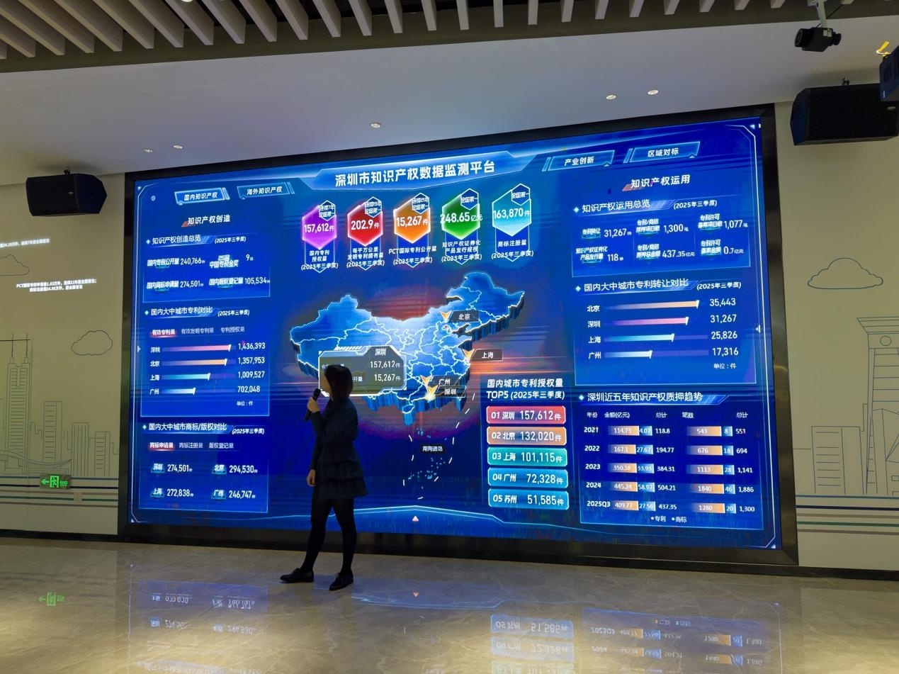 走進位于前海的深圳市知識產權保護中心(以下簡稱“中心”),一張實時更新的知識產權數據熱力圖格外醒目。通過顏色的變化,不同區域在知識產權創造、保護和運用上的活躍度一目了然。知識產權數據監測平臺還匯集了專利、商標、版權等多領域信息,并對海外知識產權動態進行跟蹤,為企業“出海”提供精準導航。
