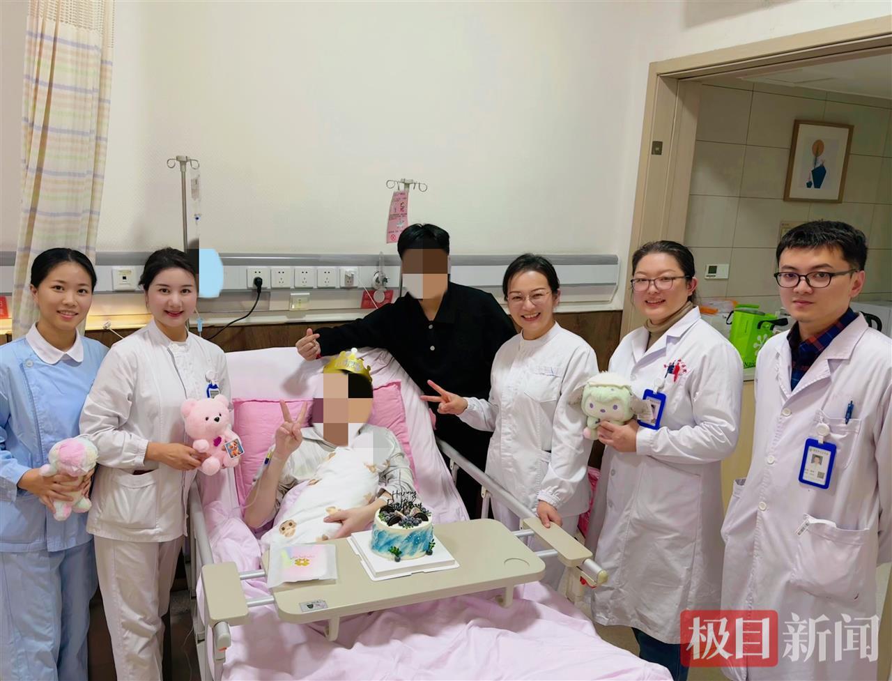 武漢市中心醫(yī)院南京路院區(qū)產(chǎn)科醫(yī)護(hù)人員為“同月同日生”的一家三口準(zhǔn)備生日驚喜
