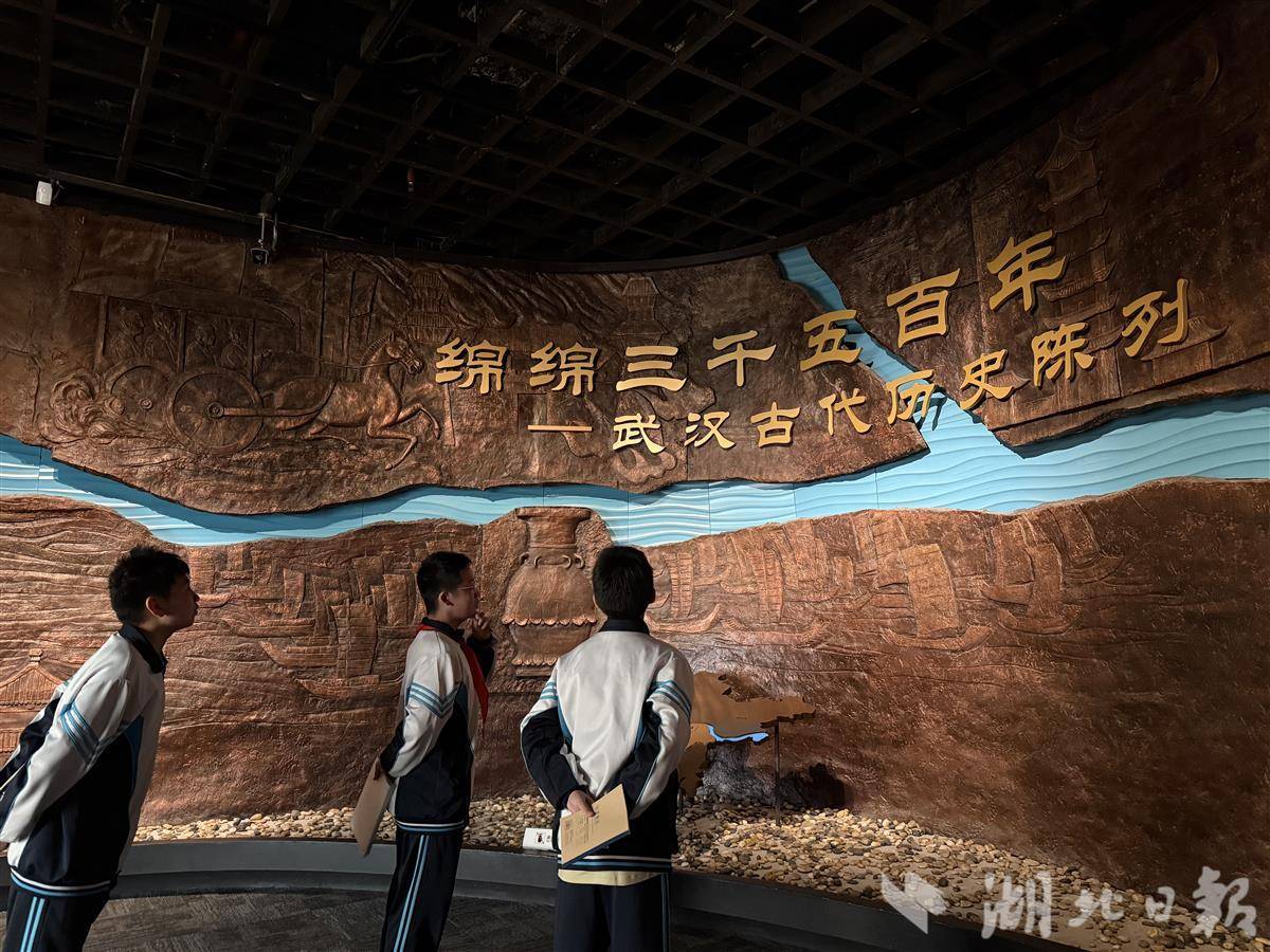 在“綿綿三千五百年”展廳,同學們沿著新石器時代至清代的歷史軸線,系統了解家鄉從“文明曙光”到“江漢朝宗”的興盛歷程。一件件珍貴文物,無聲地訴說著這片土地上的智慧與輝煌,深化了學生們對城市根脈的認知與自豪。