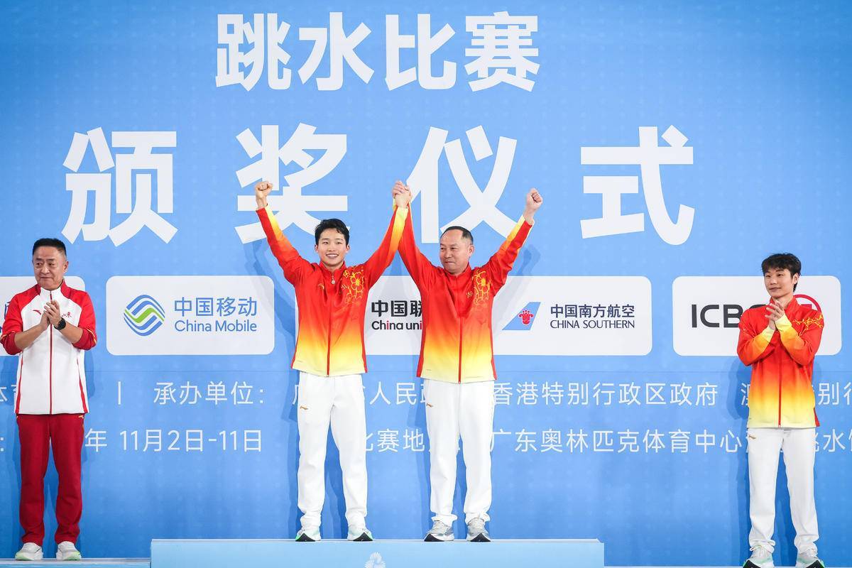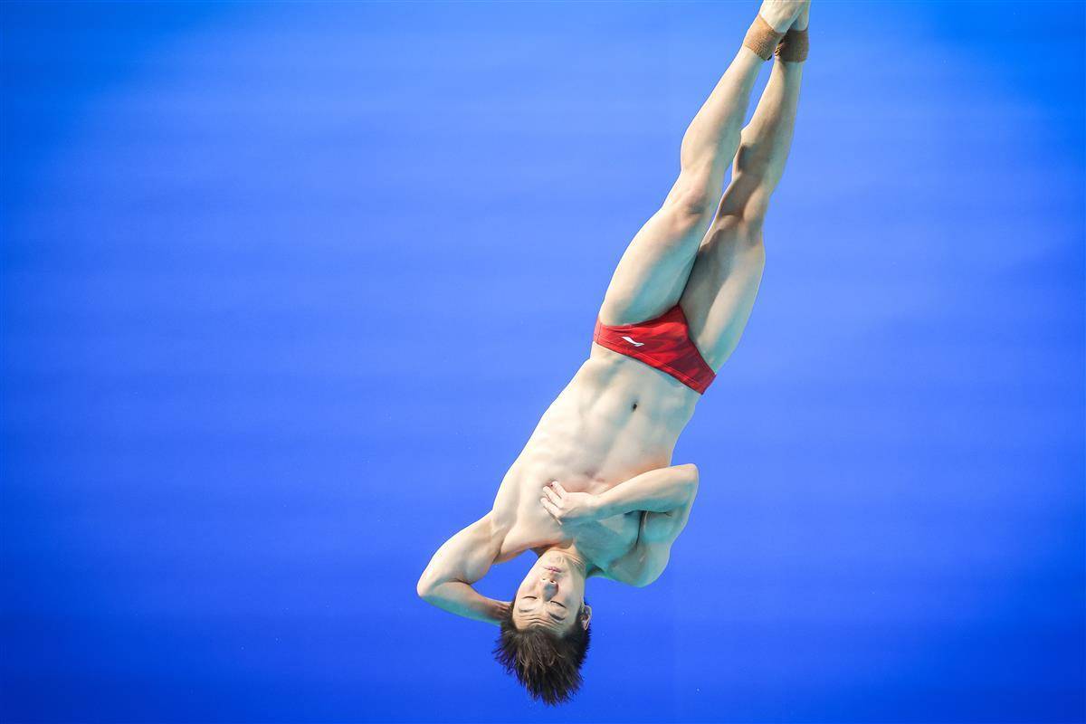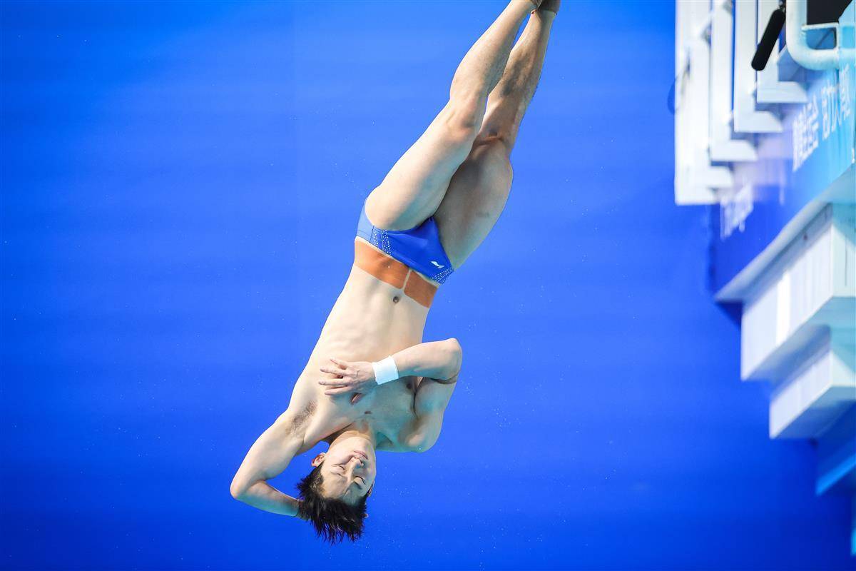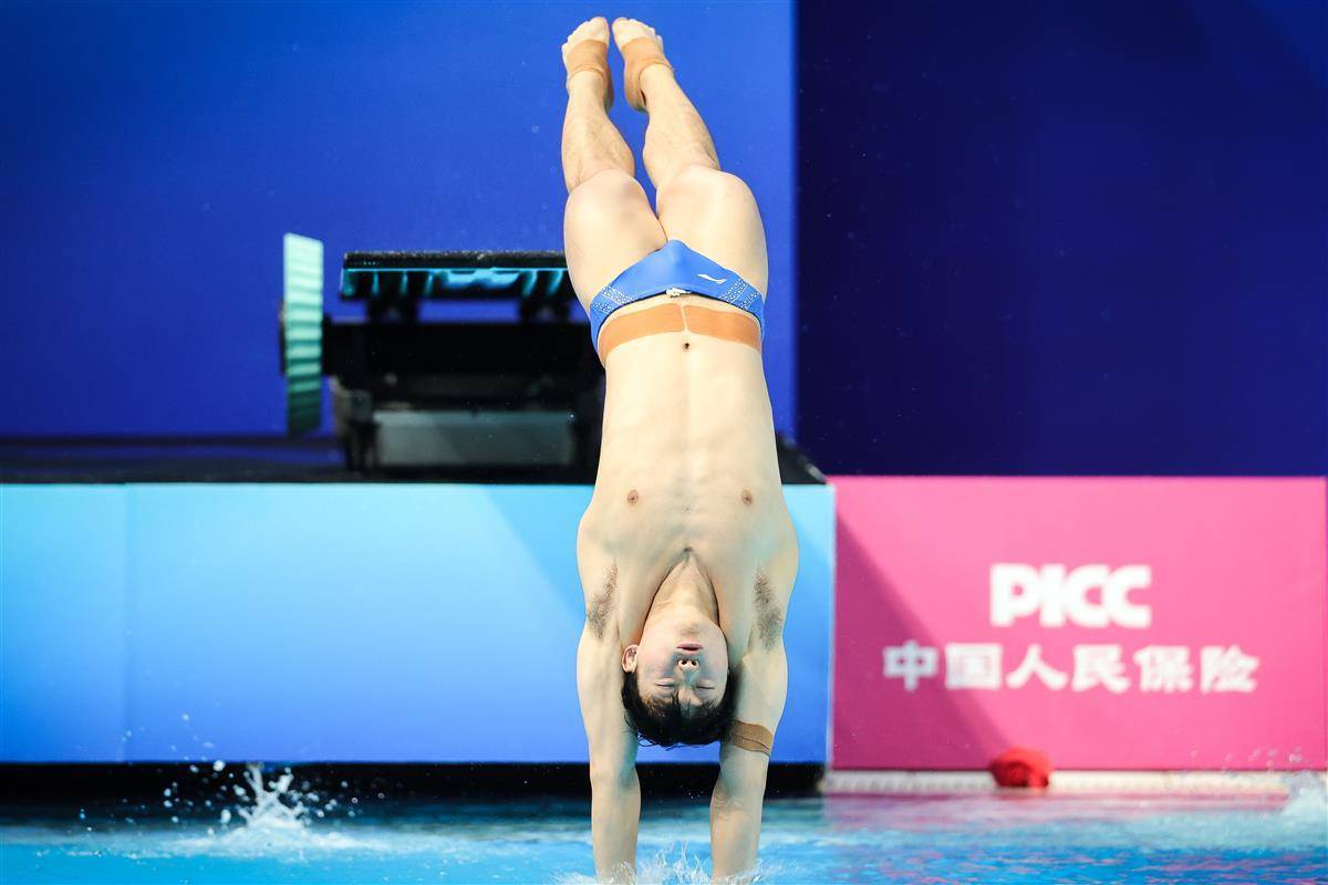 11月4日,廣東奧體中心游泳館,十五運跳水項目男子一米板比賽,我省奧運冠軍王宗源、世界冠軍鄭九源出戰,最終王宗源拿到金牌,鄭九源收獲銅牌。(湖北日報全媒記者 時龔 攝)