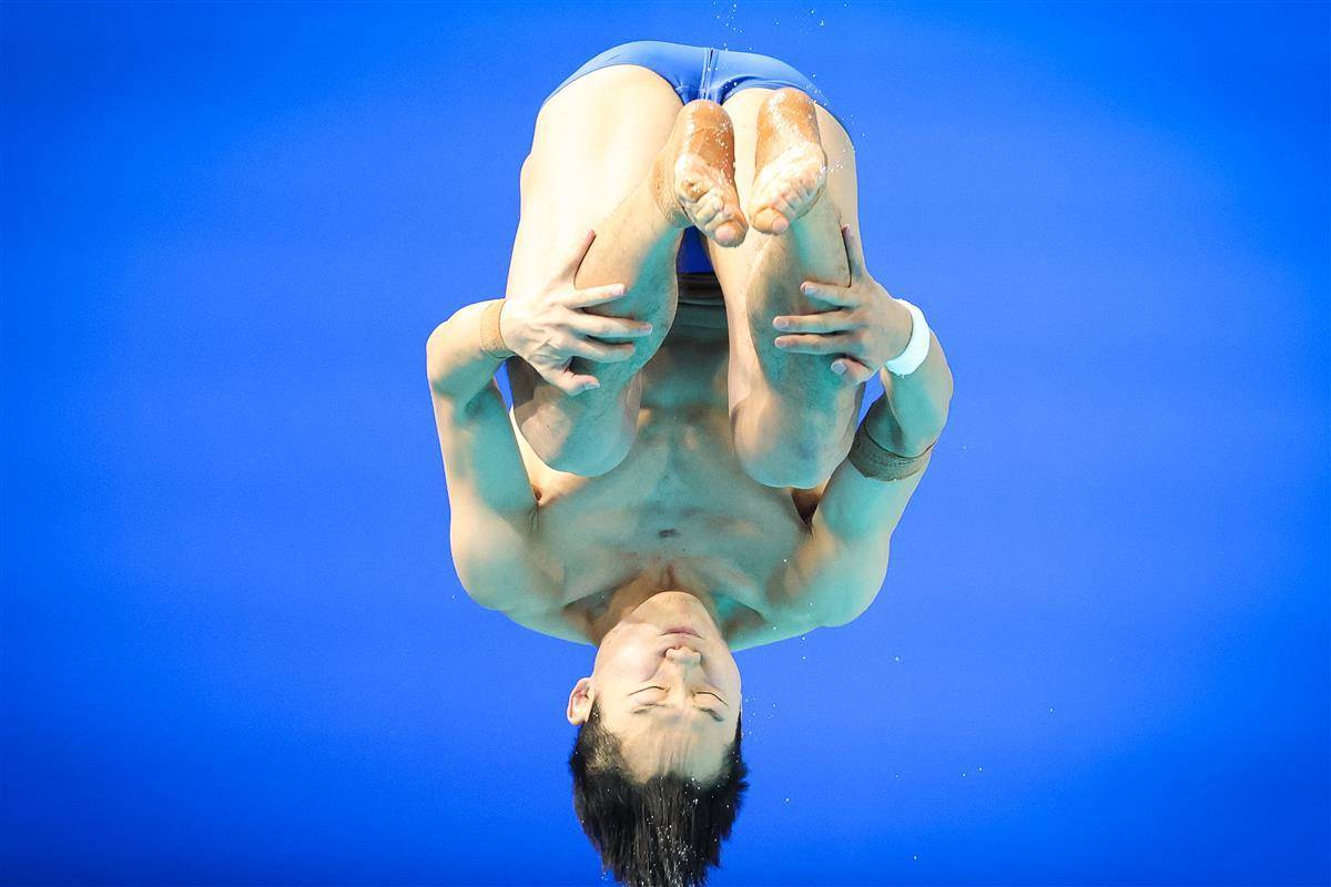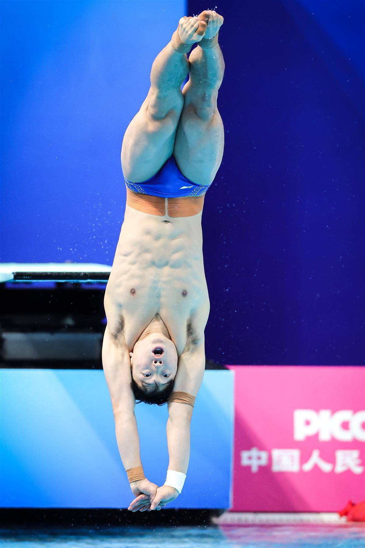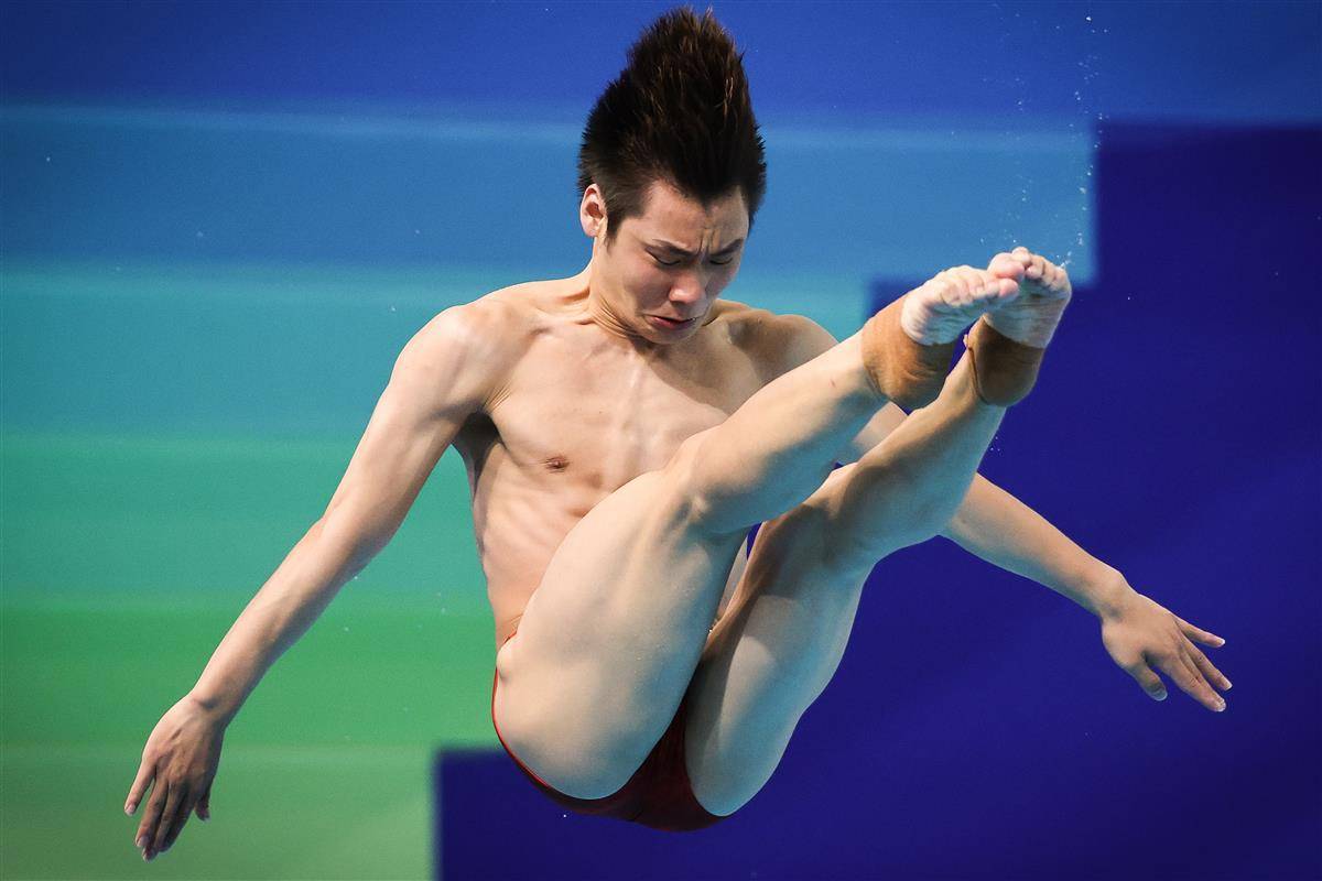 11月4日,廣東奧體中心游泳館,十五運跳水項目男子一米板比賽,我省奧運冠軍王宗源、世界冠軍鄭九源出戰,最終王宗源拿到金牌,鄭九源收獲銅牌。(湖北日報全媒記者 時龔 攝)