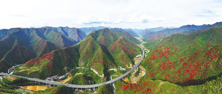 11月2日,竹山縣雙臺鄉五彩斑斕,G242國道與十巫(十堰-巫溪)高速公路如兩條絲帶穿行于層林盡染的連綿群山。車流如梭,在浪漫秋色中繪出“路在景中、景隨路延”的生態交通新畫卷。 (視界網 石濡華 攝)