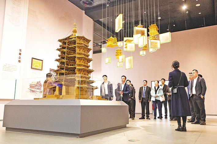 觀眾在煥然一新的中國建筑科技館古代建筑展廳參觀古代建筑模型。 (湖北日報全媒記者 何宇欣 攝)