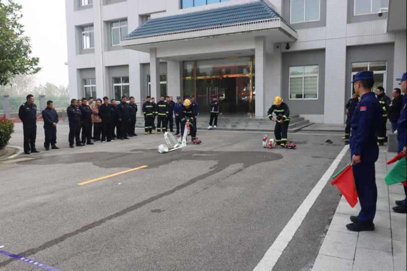 “各就位,預備——開始!”隨著裁判員一聲令下,比武競賽正式拉開帷幕。在水帶連接現場,參賽隊員如離弦之箭沖出起點,甩帶、對接、沖刺一氣呵成,水帶在空中劃出精準弧線,接口碰撞聲與急促腳步聲交織成激昂的賽場旋律;單干線出兩支水槍操環節,麻豪口鎮代表隊隊員分工明確、配合默契,快速完成設備組裝、啟動調試、瞄準噴射等一系列操作,水柱精準命中目標,展現出極強的裝備操控能力;原地佩戴空氣呼吸器項目中,章莊鋪代表隊隊員動作嫻熟規范,眨眼間便完成檢查、佩戴、氣密測試等全套流程,用速度詮釋著“與時間賽跑”的救援真諦。