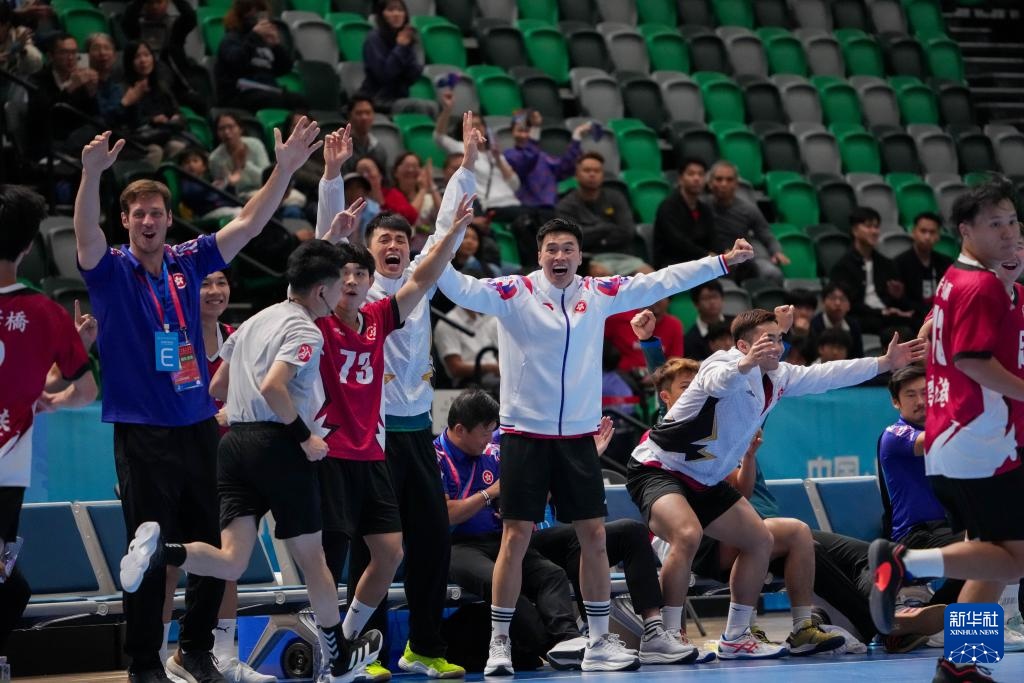 11月4日,香港隊(duì)在比賽中慶祝球隊(duì)得分。