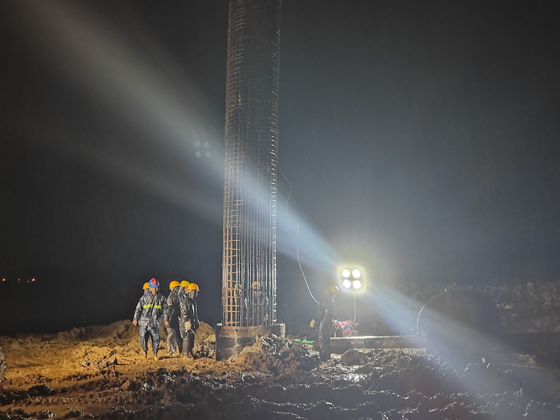 國網湖北送變電公司員工夜間開展基礎施工作業。通訊員供圖